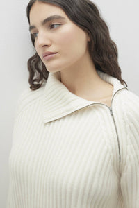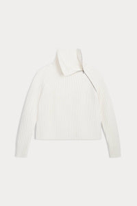 The Aryana Cashmere Turtleneck Sweater features a modern asymmetrical zipper detail and a ribbing throughout. Its modest cropped length adds a contemporary edge to a classic silhouette.