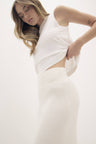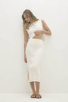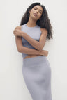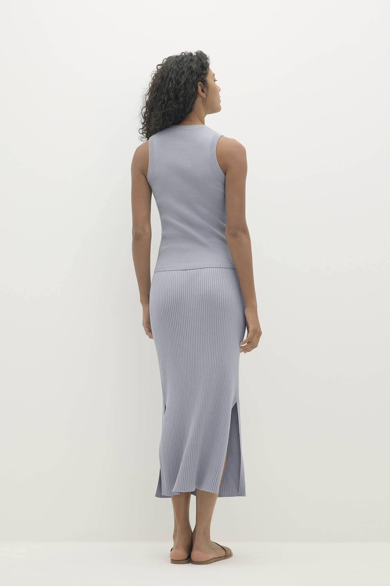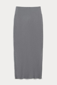Beautiful ribbed knit cotton cashmere skirt in a stretchy, yet fitted silhouette. Complete with chic side slits and thick elastic waistband for a flattering fit.