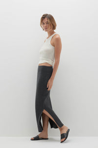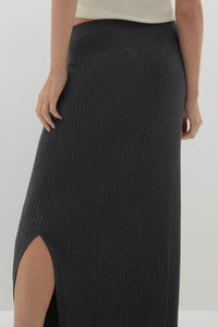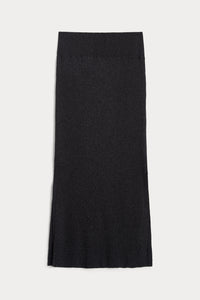 Beautiful ribbed knit cotton cashmere skirt in a stretchy, yet fitted silhouette. Complete with chic side slits and thick elastic waistband for a flattering fit.