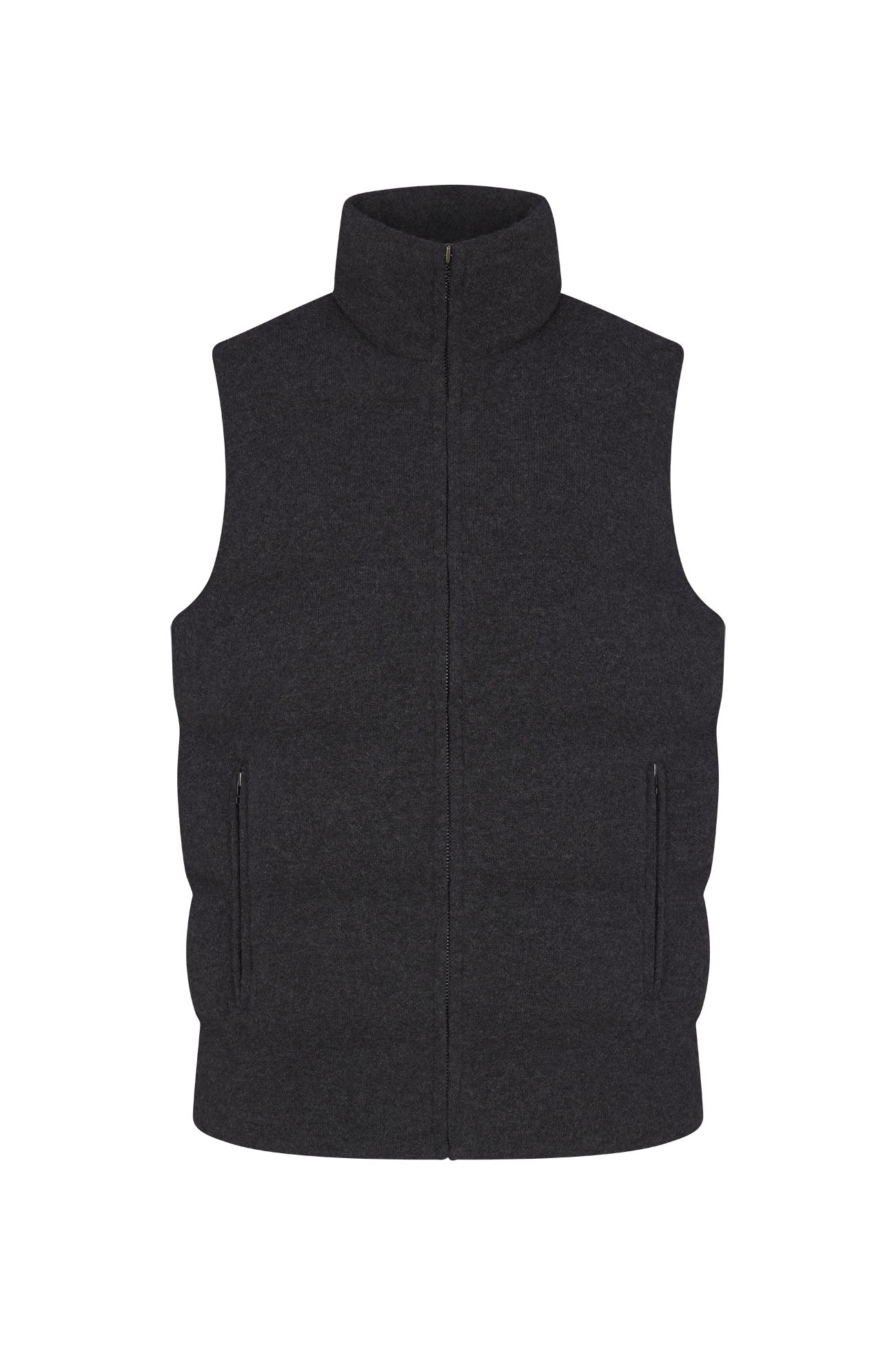 The ideal stylish yet functional transitional weather closet staple. Cashmere sleeveless puffer vest featuring a funnel neck and pockets with zip closure. A cool look layered over a cashmere sweater, or layered under a jacket during chillier days.