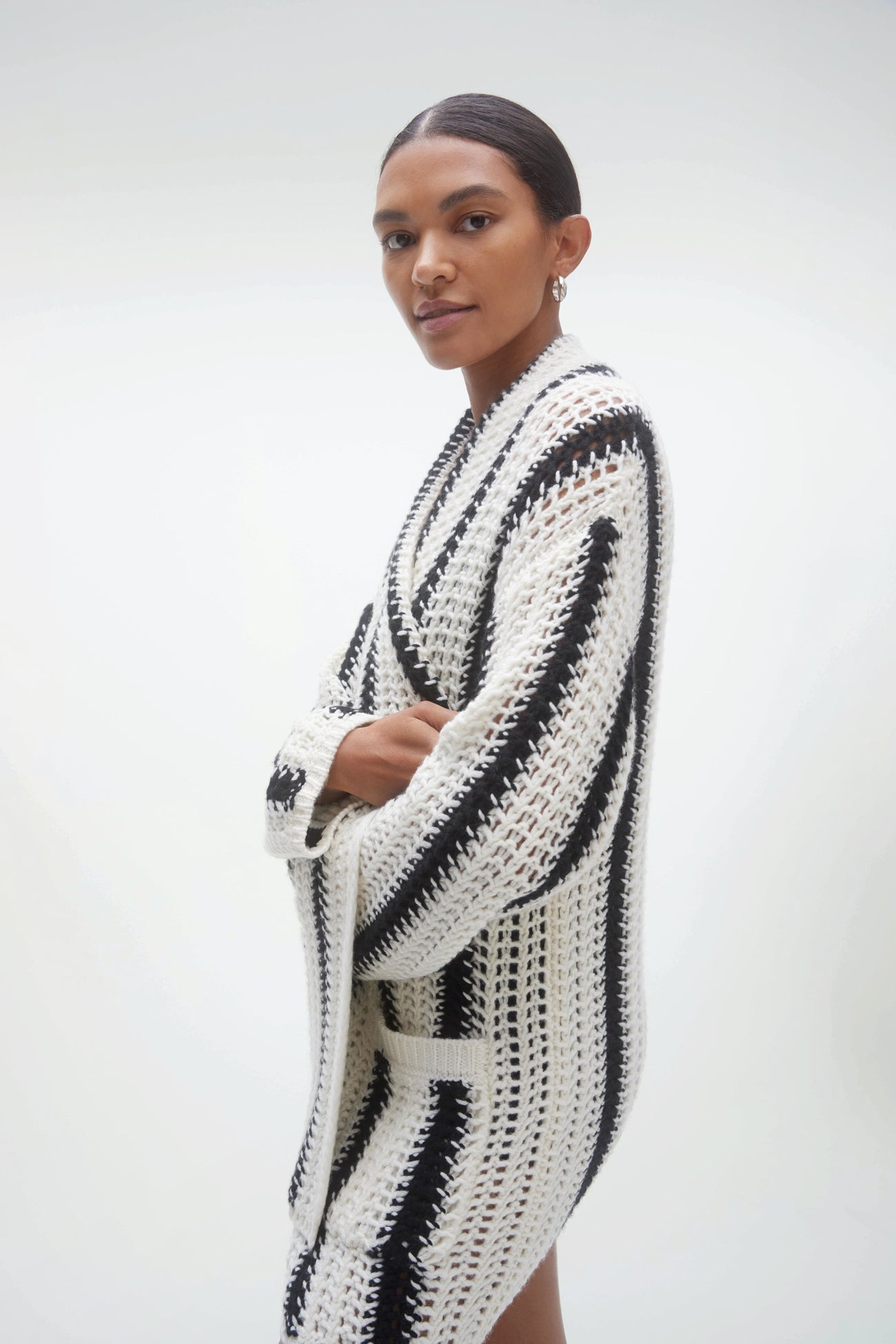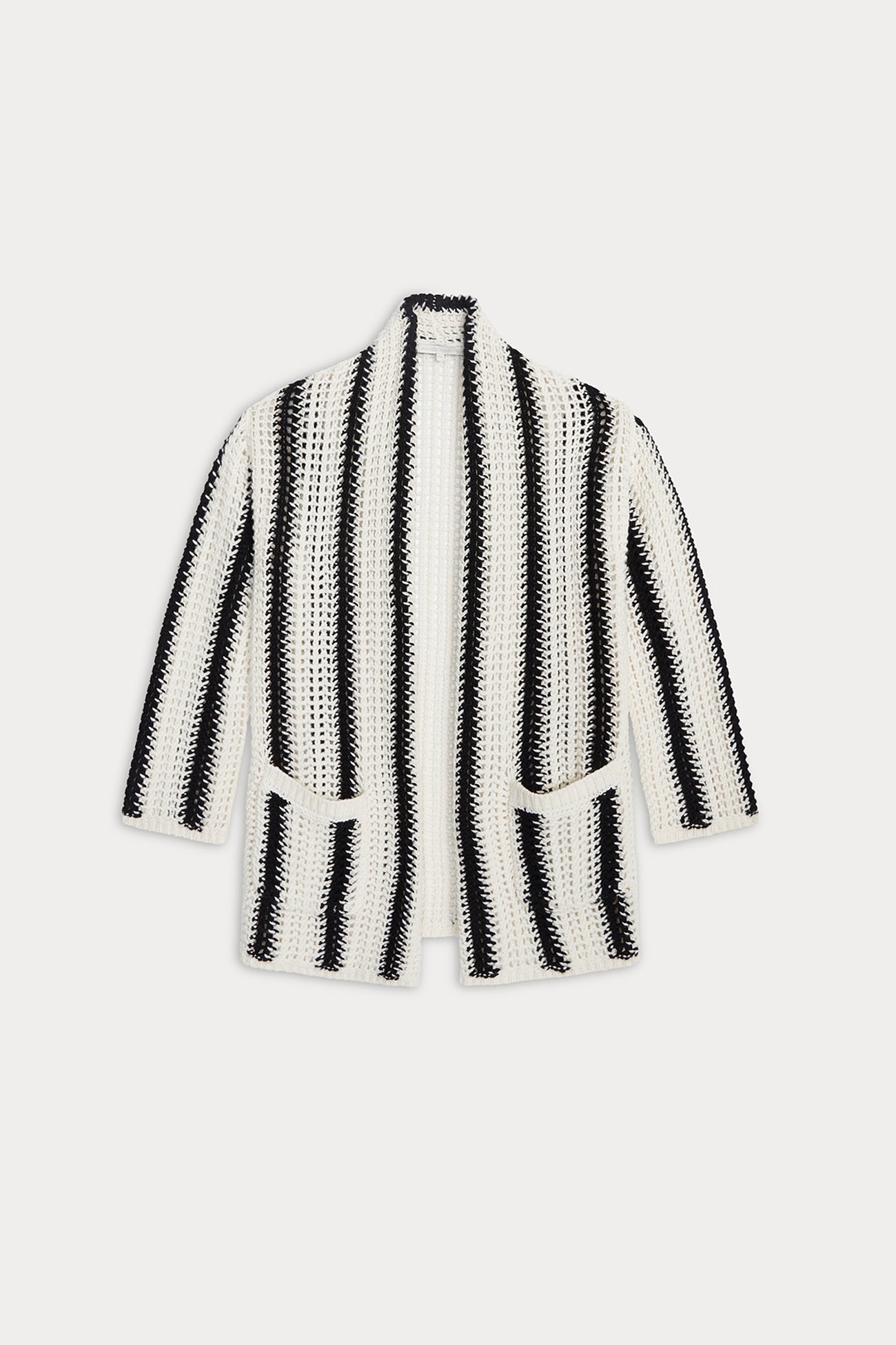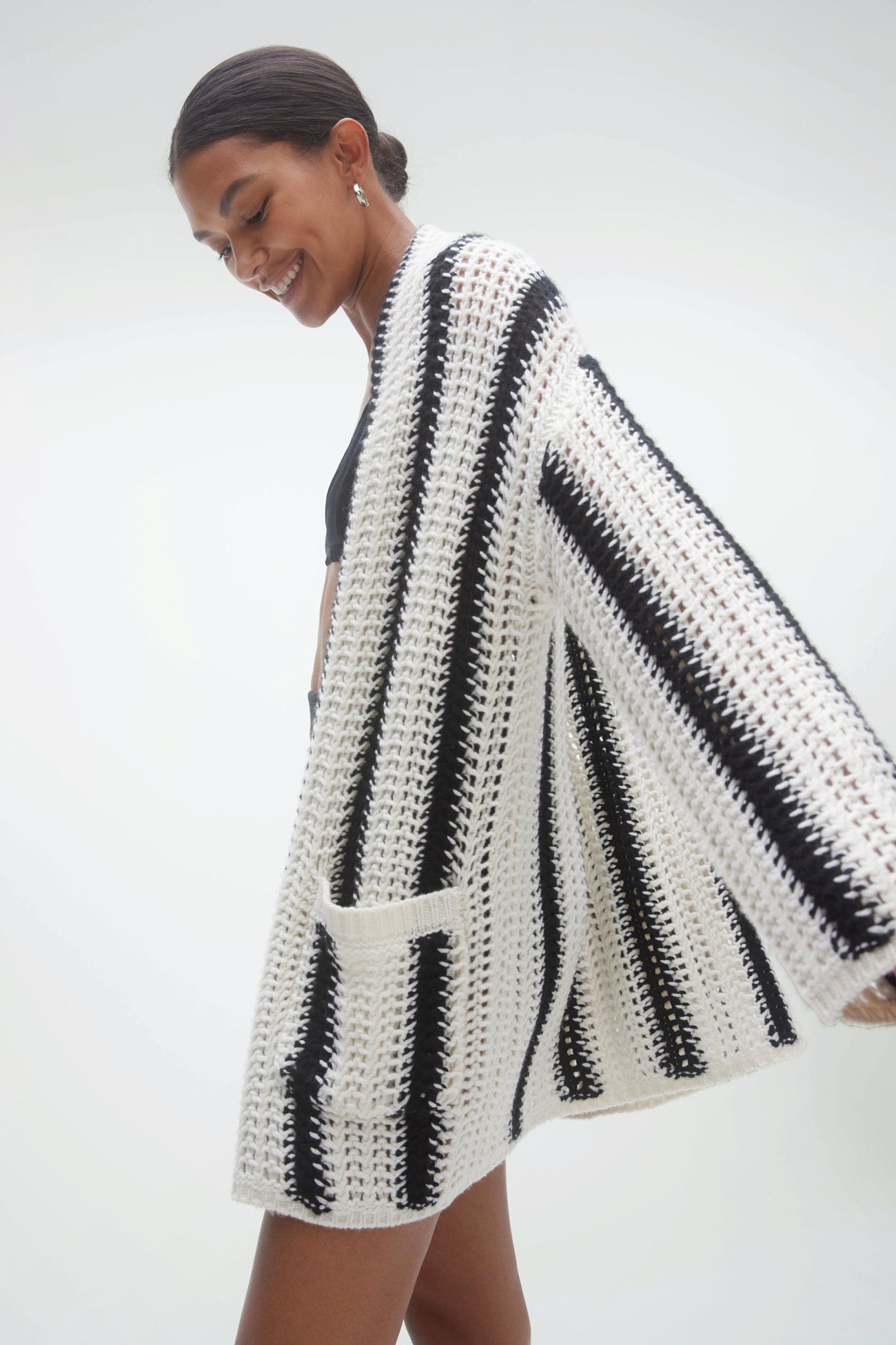 Meet our Deja cardigan. With an open knit design and stripe pattern, the Deja is a cozy essential with timeless style
