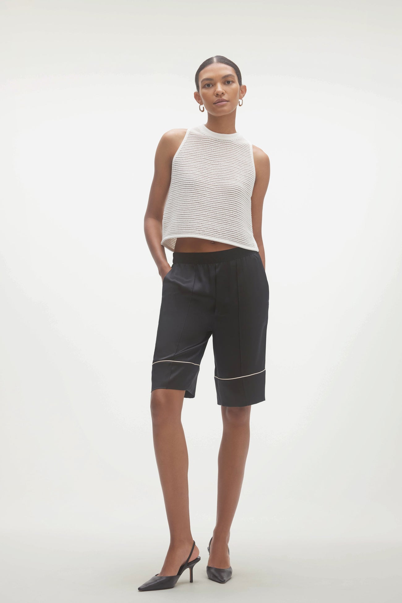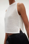 The Essense tank is crafted from a breathable blend of 85% cotton and 15% cashmere—an ideal pairing for warmer months. Cotton brings a lightweight, moisture-wicking quality, while a touch of cashmere adds subtle softness and a luxe hand-feel. The open-knit design enhances airflow, making this piece feel barely there on even the hottest days. Designed for effortless layering or wearing solo, it’s a warm-weather essential that keeps you cool without compromising on comfort or style.