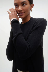 Soft and lightweight cardi in a long silhouette featuring dramatic side vents. Complemented with extra long sleeves and ribbed cuffs.