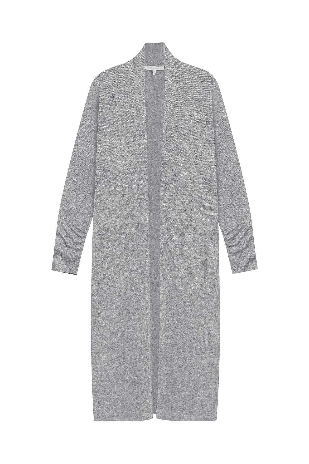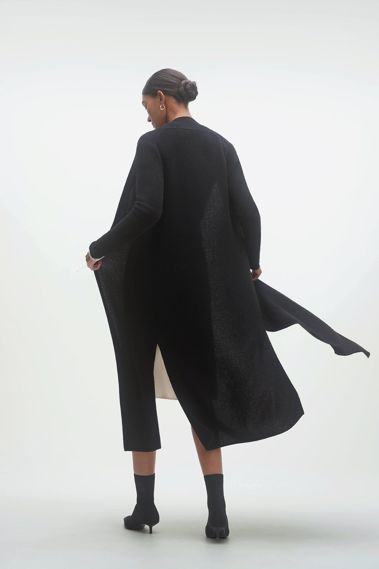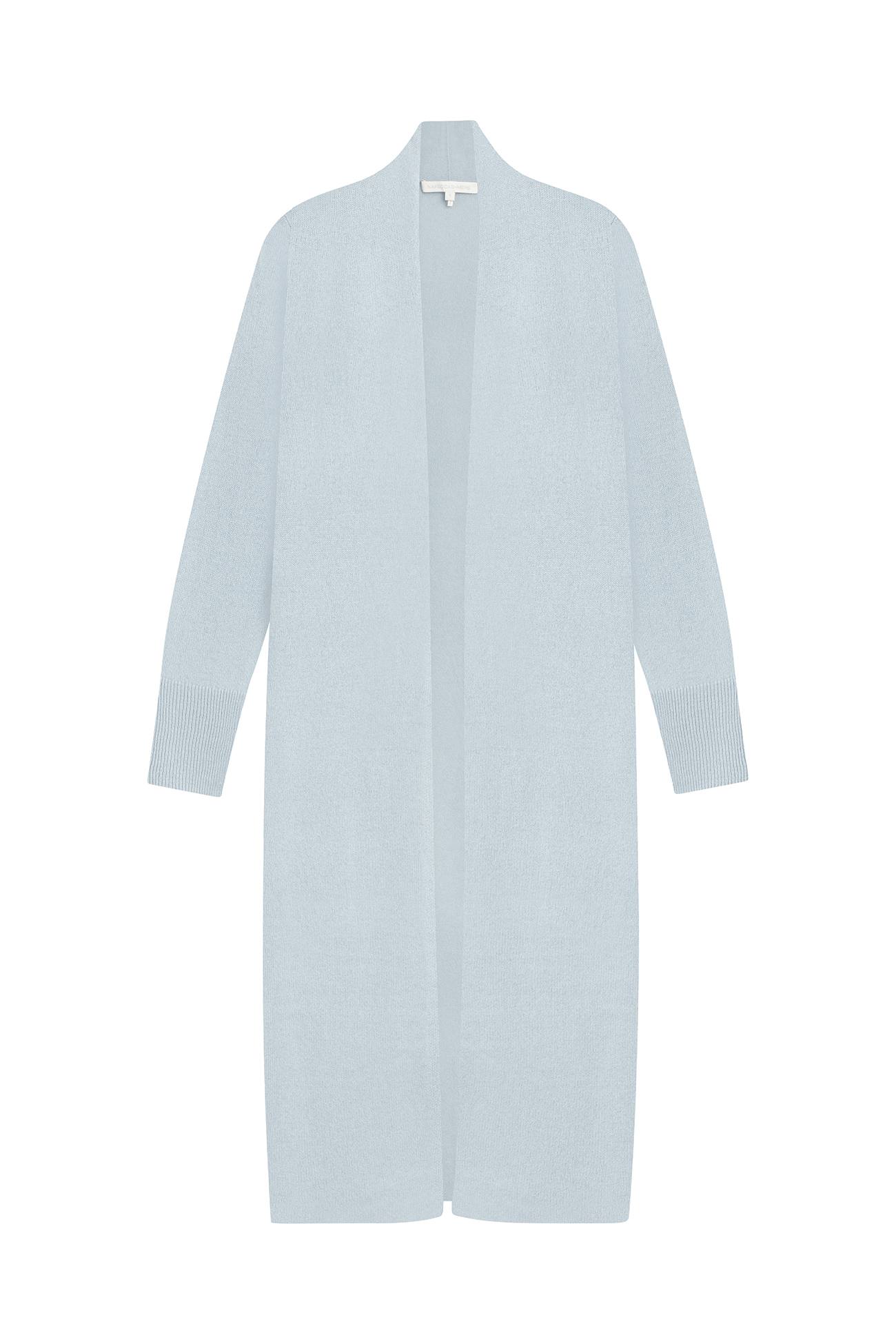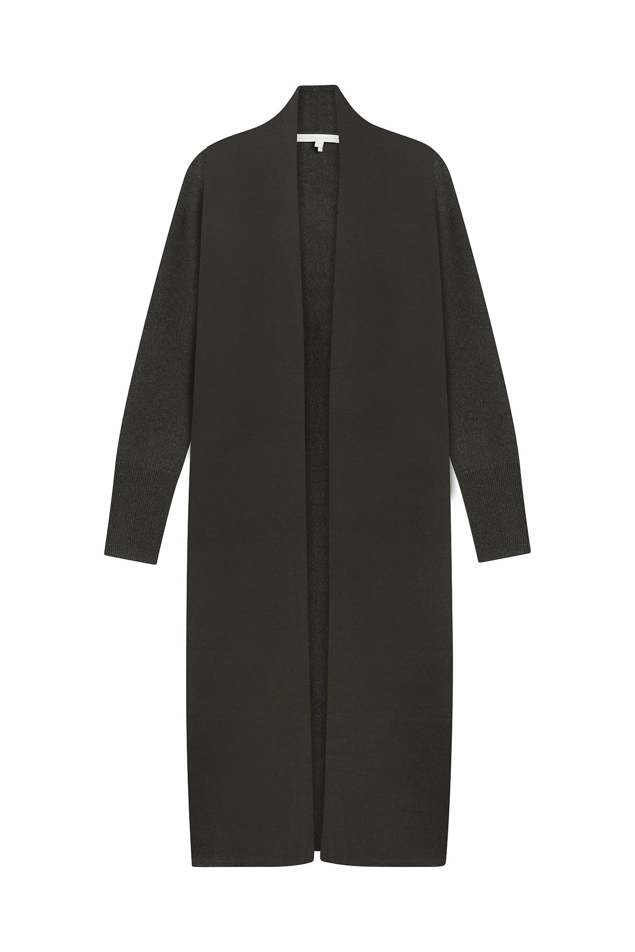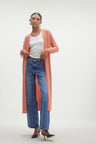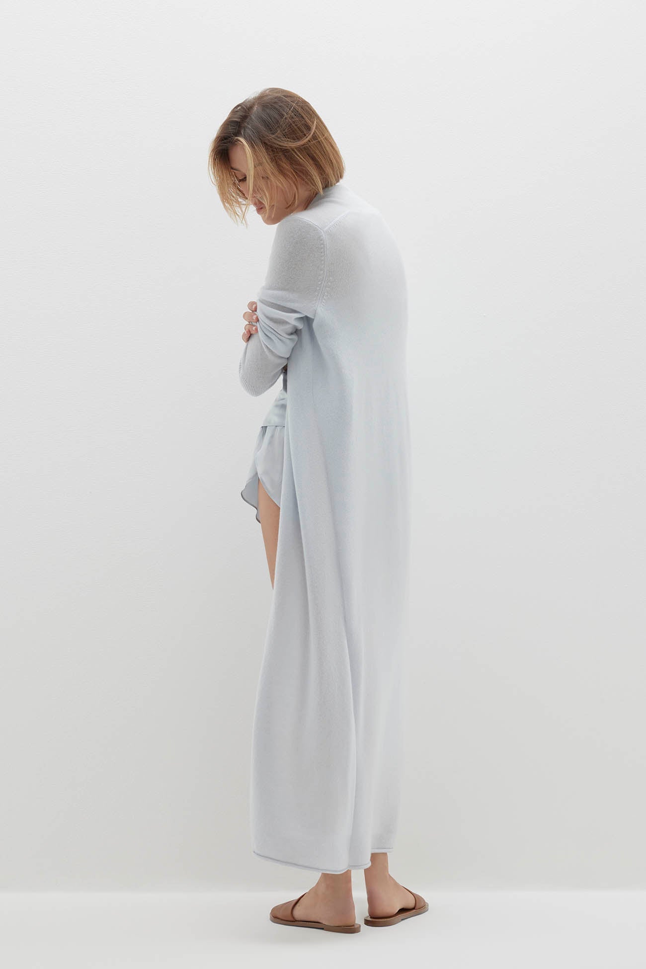 Soft and lightweight cardi in a long silhouette featuring dramatic side vents. Complemented with extra long sleeves and ribbed cuffs.