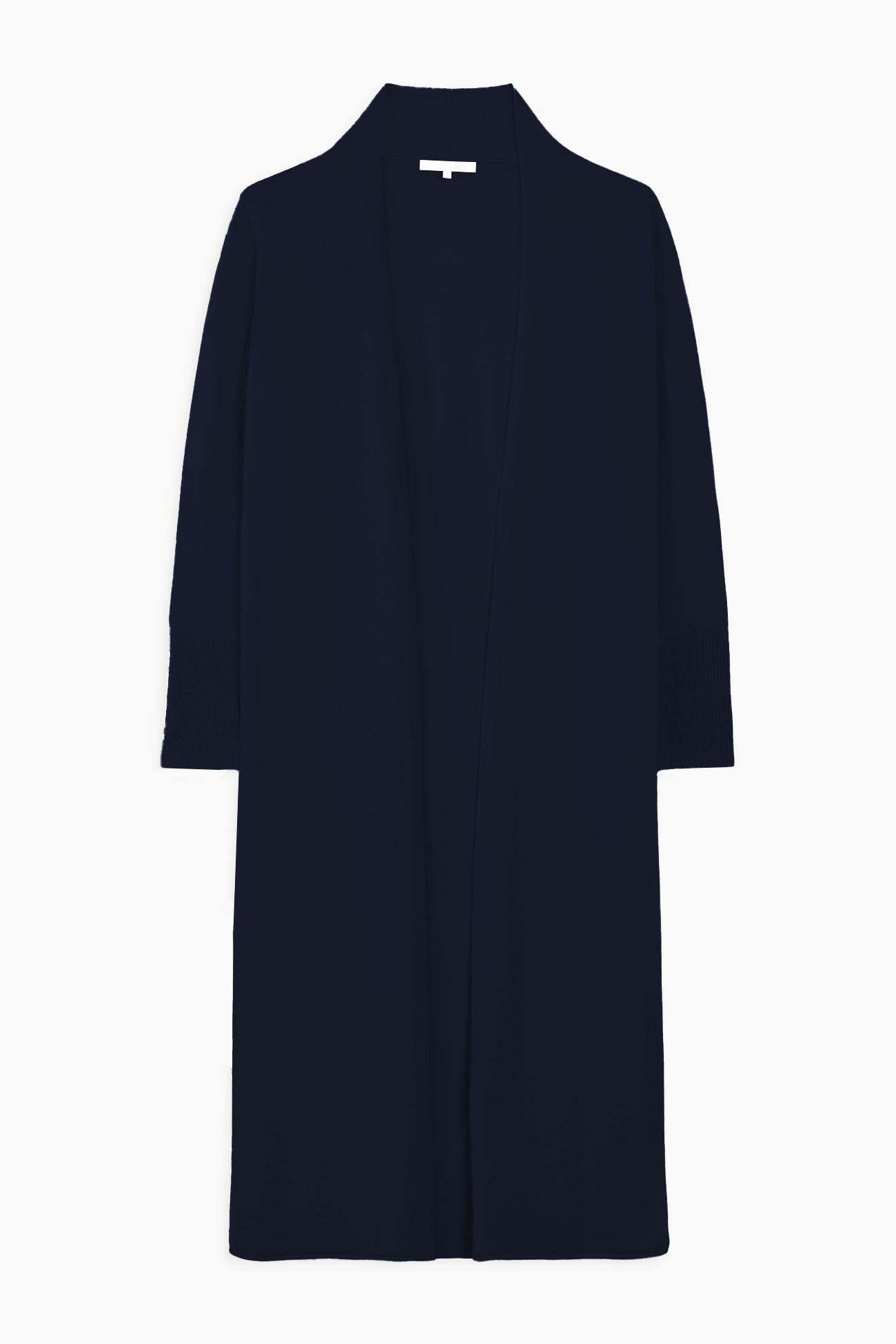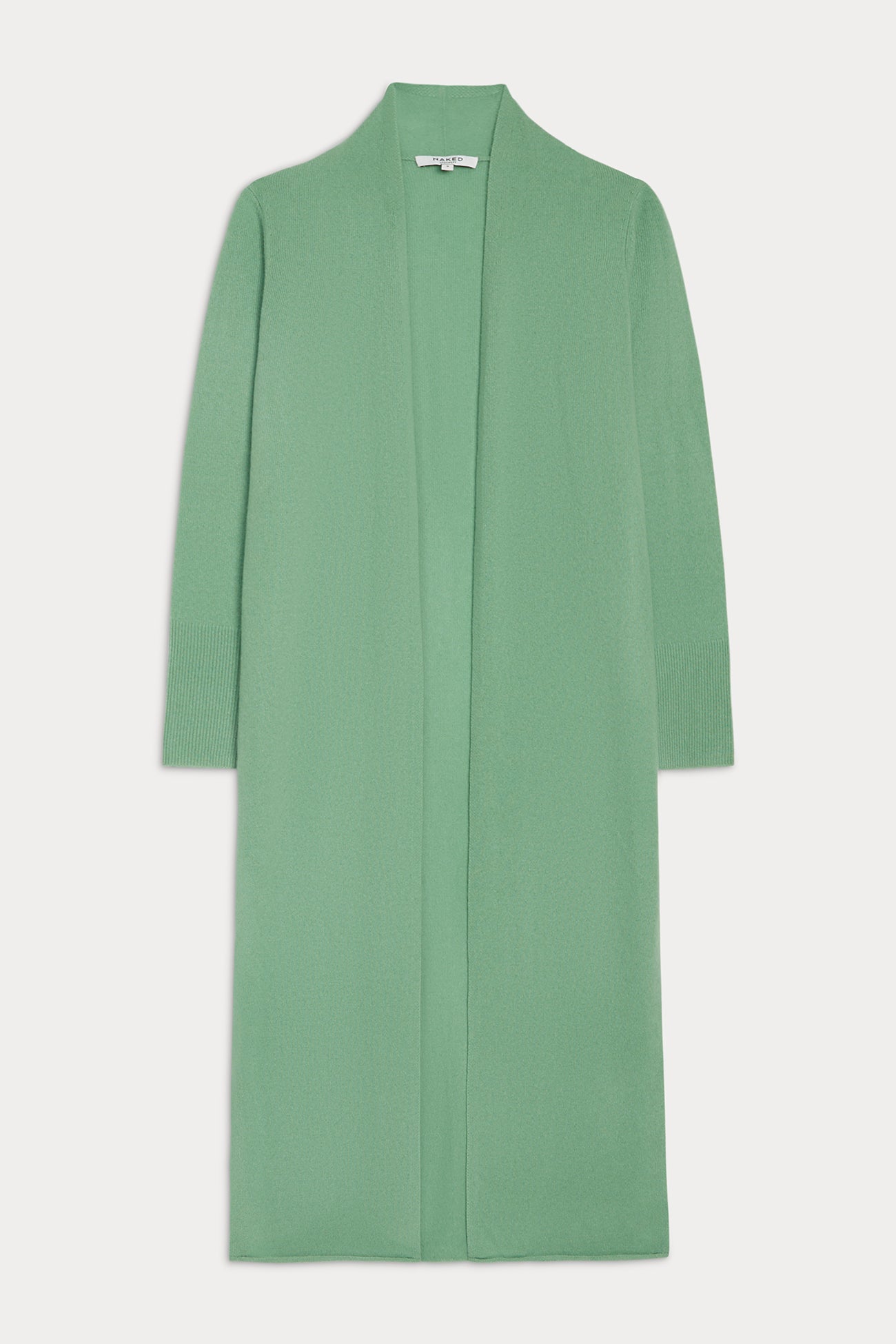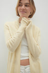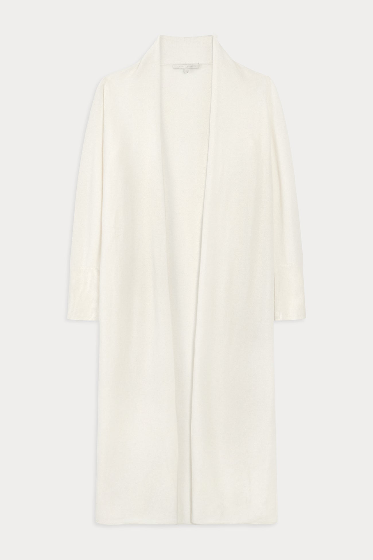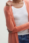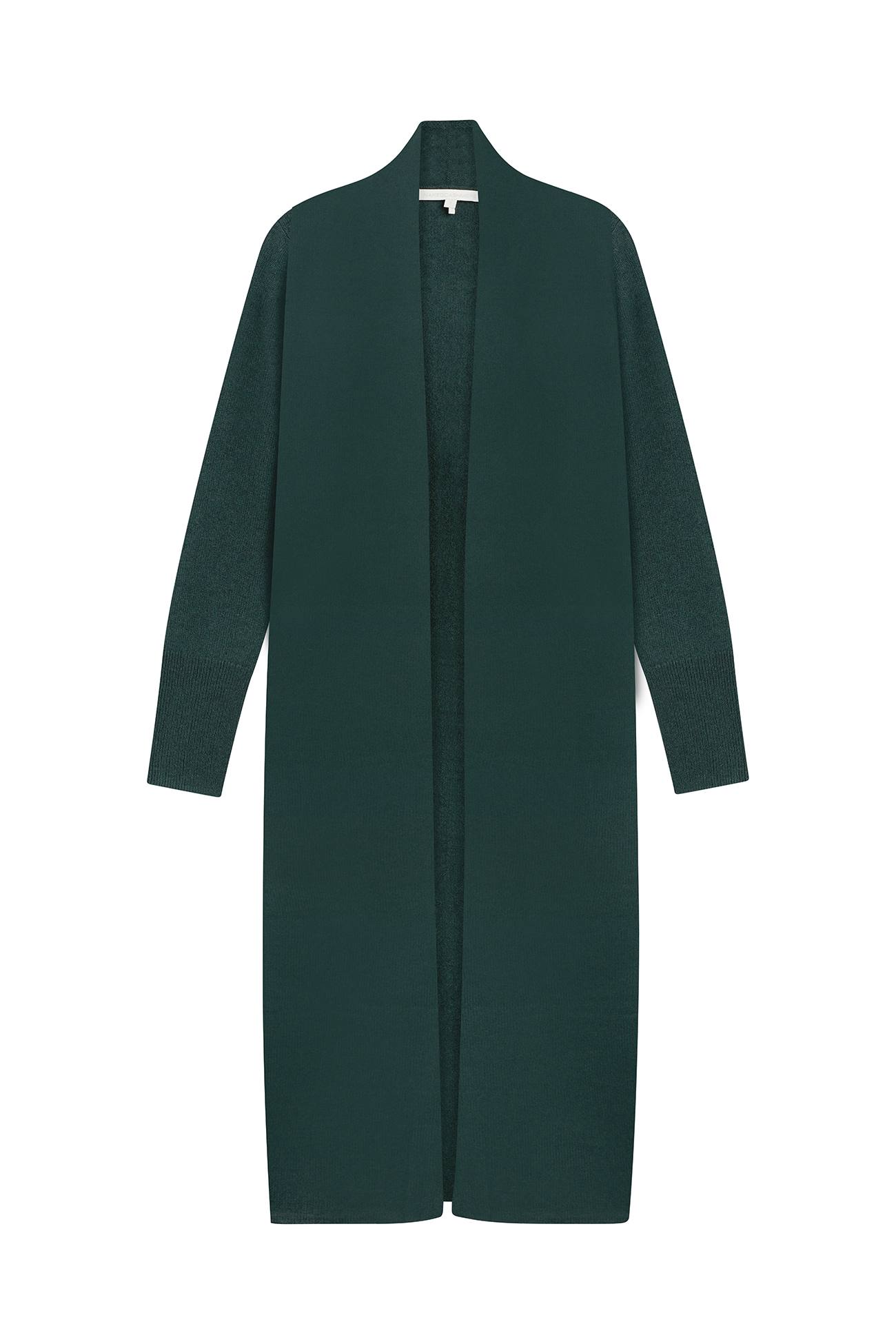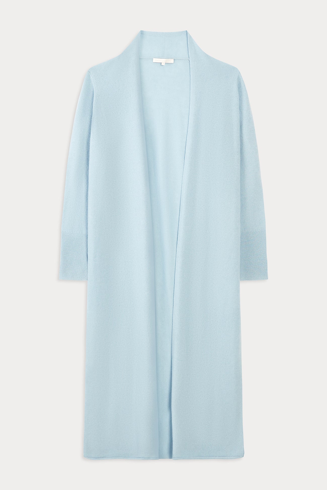 Soft and lightweight cardi in a long silhouette featuring dramatic side vents. Complemented with extra long sleeves and ribbed cuffs.