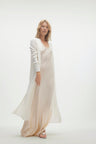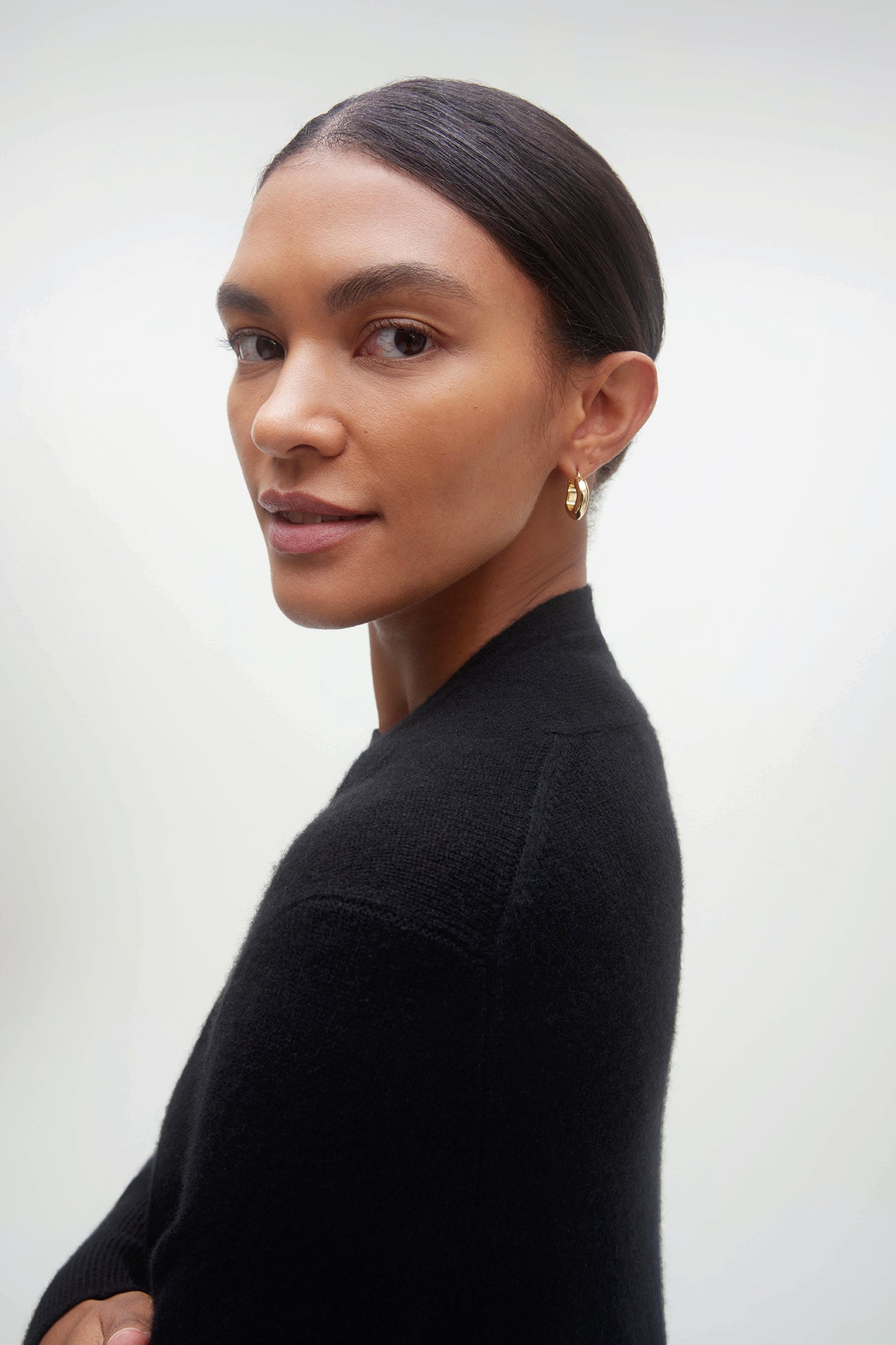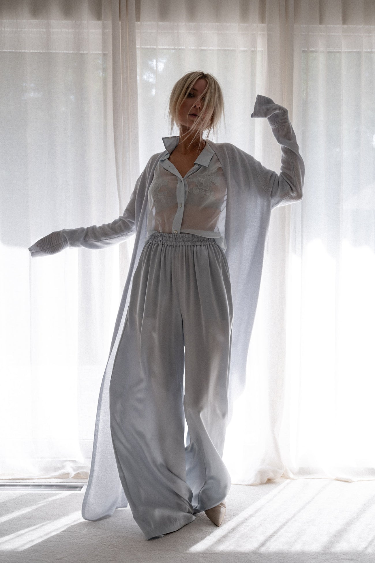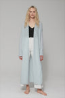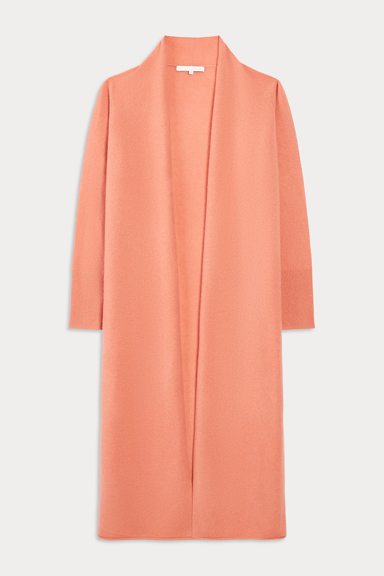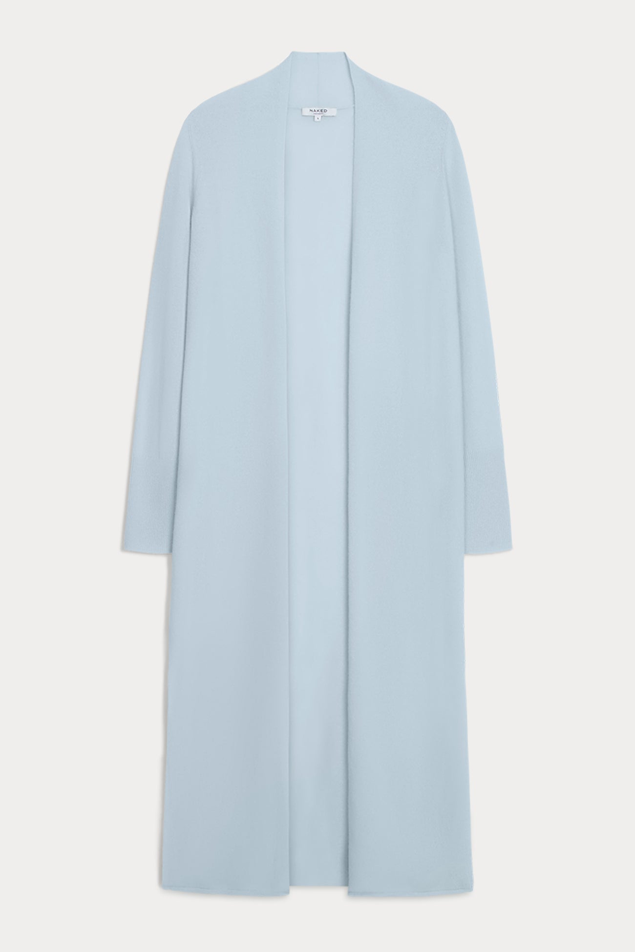 Soft and lightweight cardi in a long silhouette featuring dramatic side vents. Complemented with extra long sleeves and ribbed cuffs.