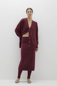 Chic knit pencil skirt that will take you from day to night. Sleek long-line silhouette and thick ribbed waist band for the perfect fit.