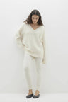 The Gladys sweater offers a relaxed fit and luxurious brushed cashmere construction. A deep V-neck and side charm detail add understated elegance to this cozy, versatile piece.