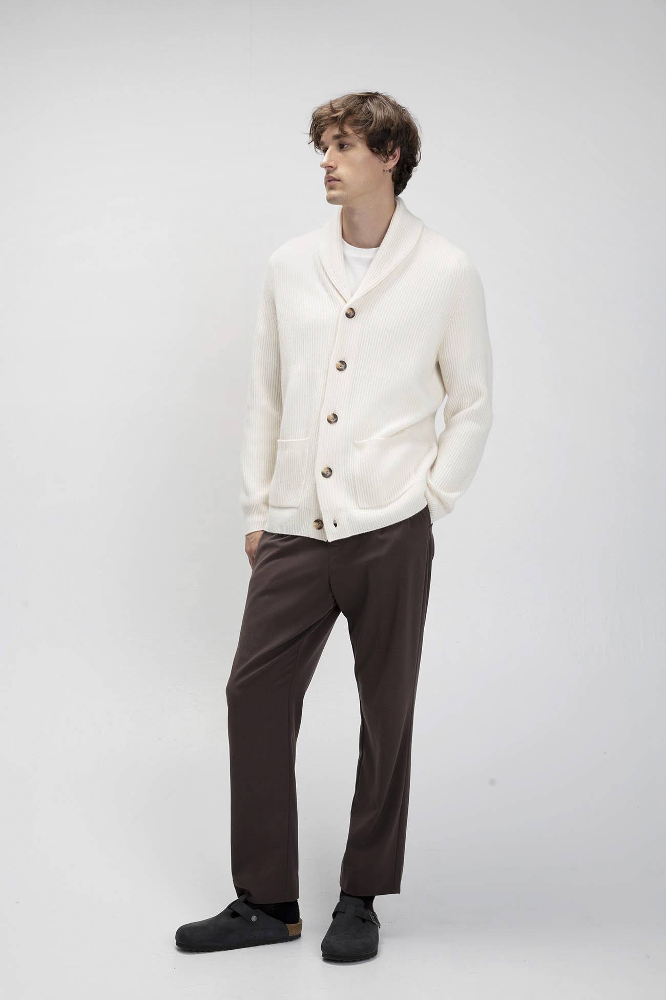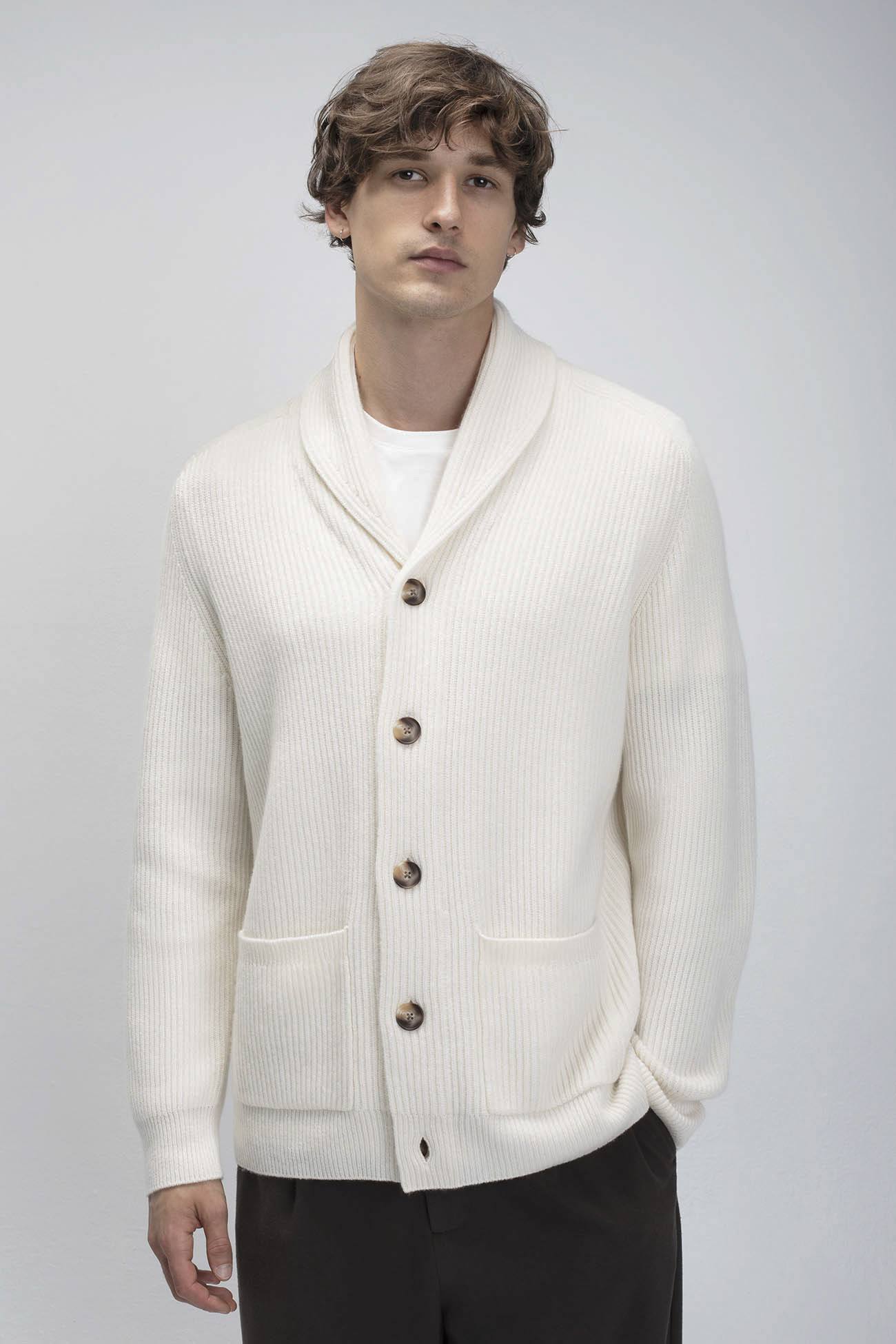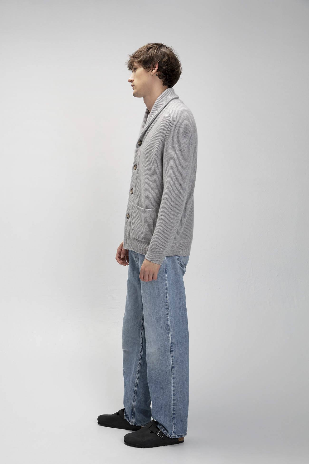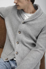 The Harry cardigan offers a chunky knit design with a unisex appeal. Featuring a shawl collar and patch pockets, this cashmere cardigan is the ultimate cozy piece for layering or wearing alone.