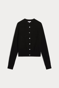 Jalya is a classic lightweight cashmere cardigan with ribbed trim and delicate mother-of-pearl buttons. A timeless layering piece. Pair with the Sylvie for a cute cardigan set.