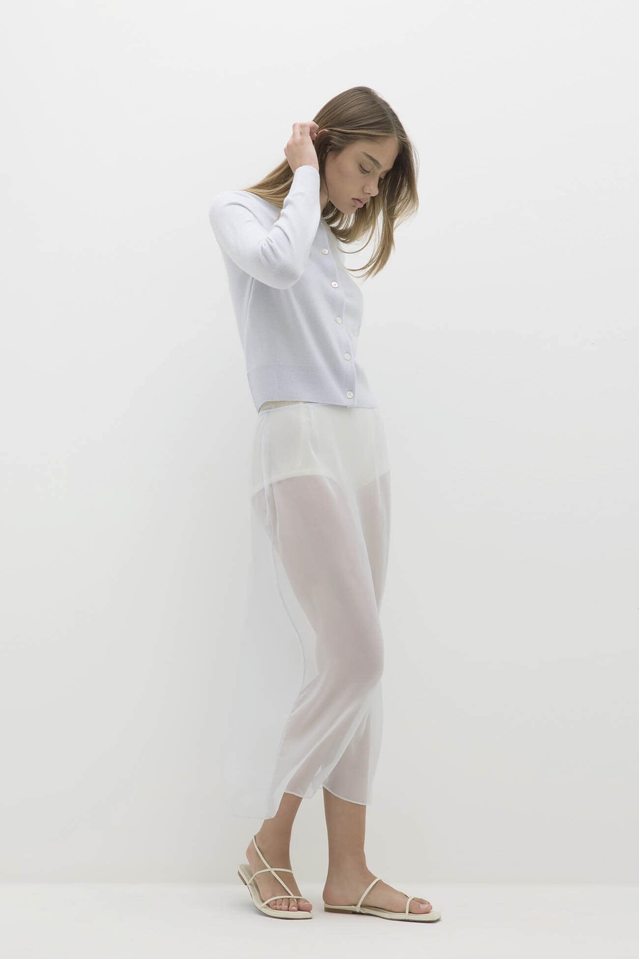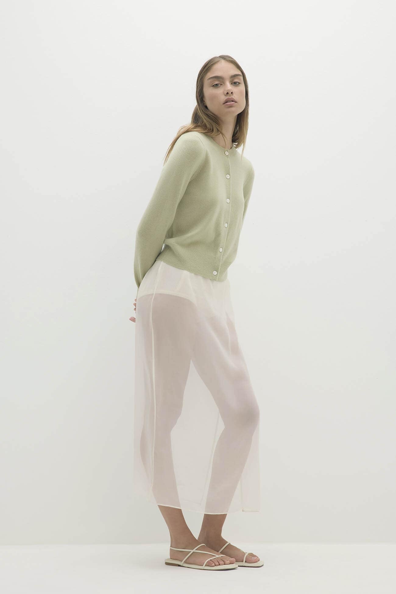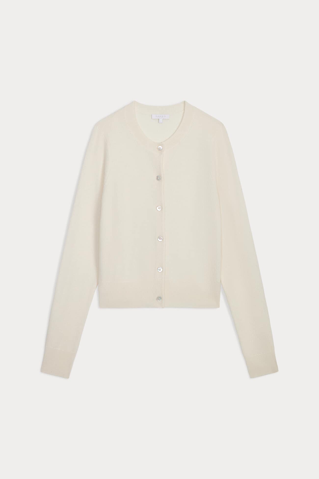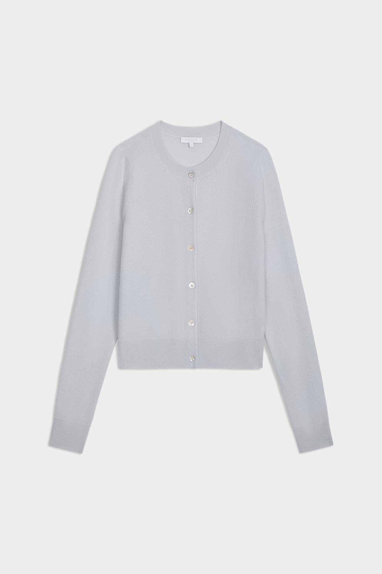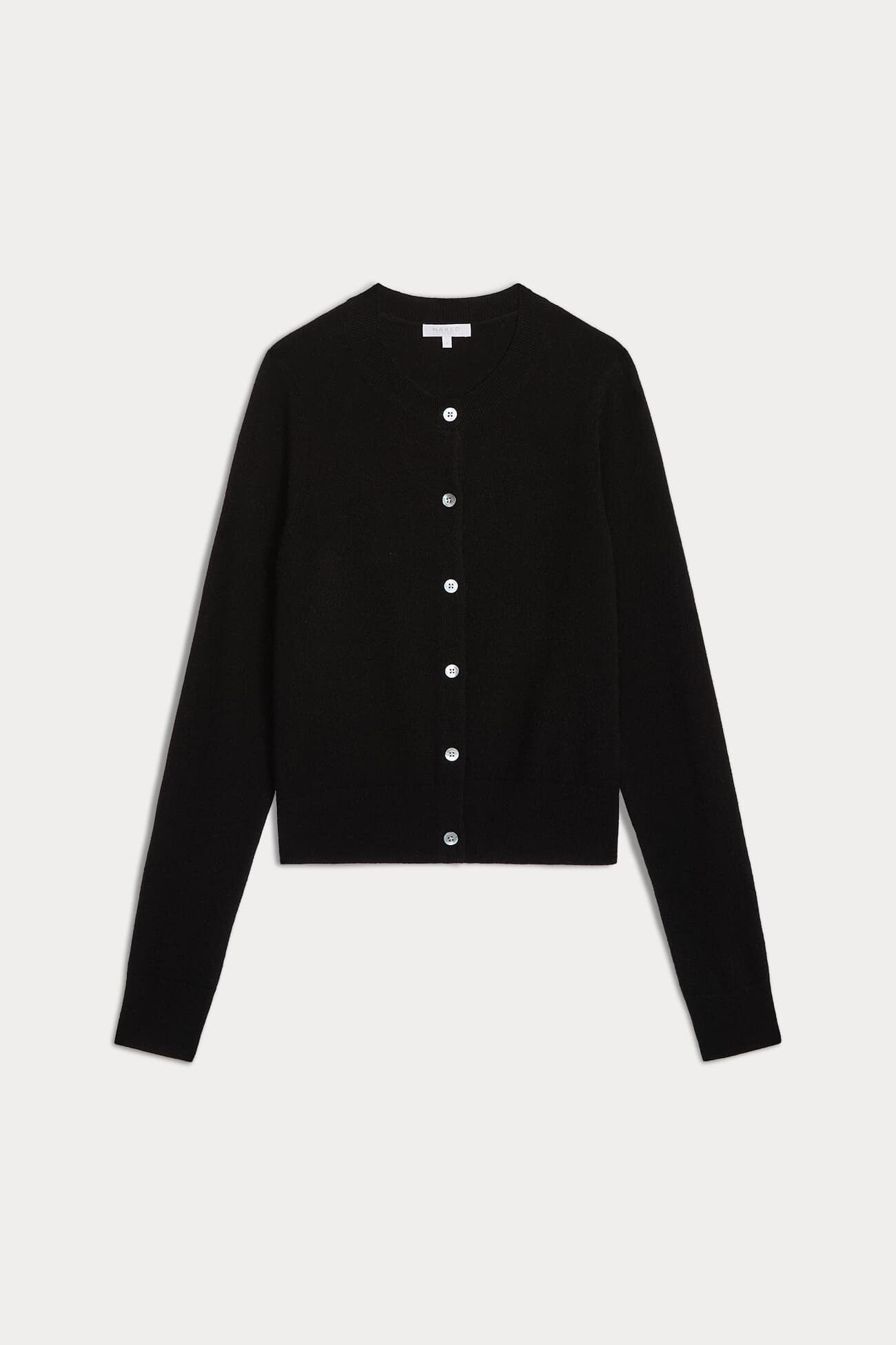 Jalya is a classic lightweight cashmere cardigan with ribbed trim and delicate mother-of-pearl buttons. A timeless layering piece. Pair with the Sylvie for a cute cardigan set.