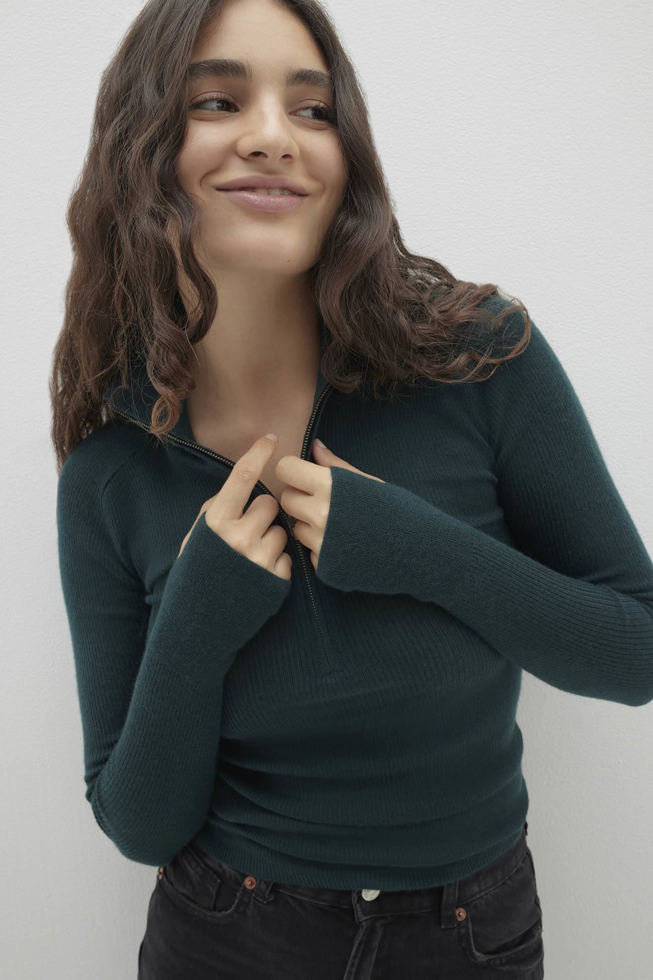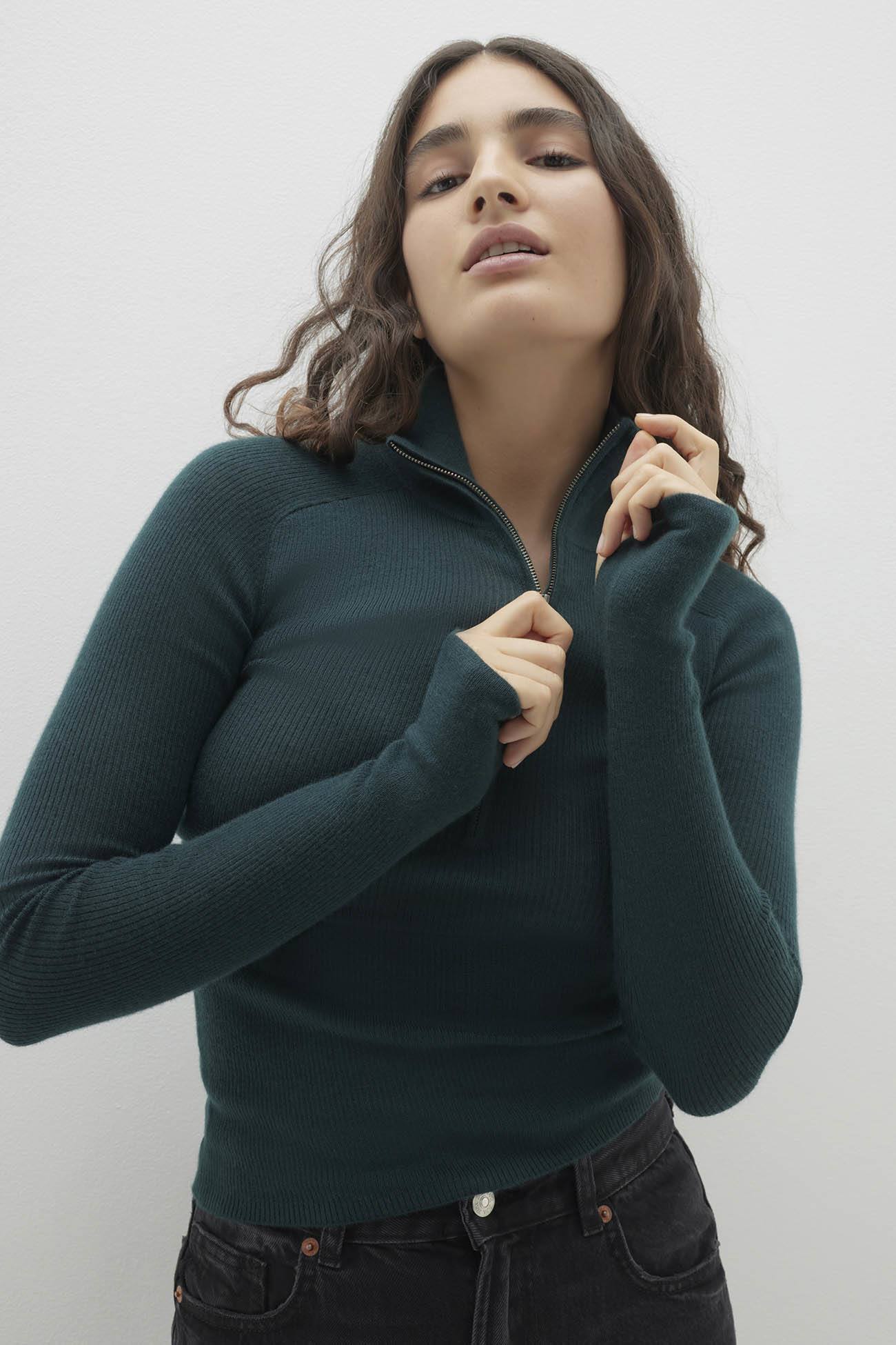 JULIETTE FITTED CASHMERE QUARTER-ZIP