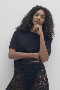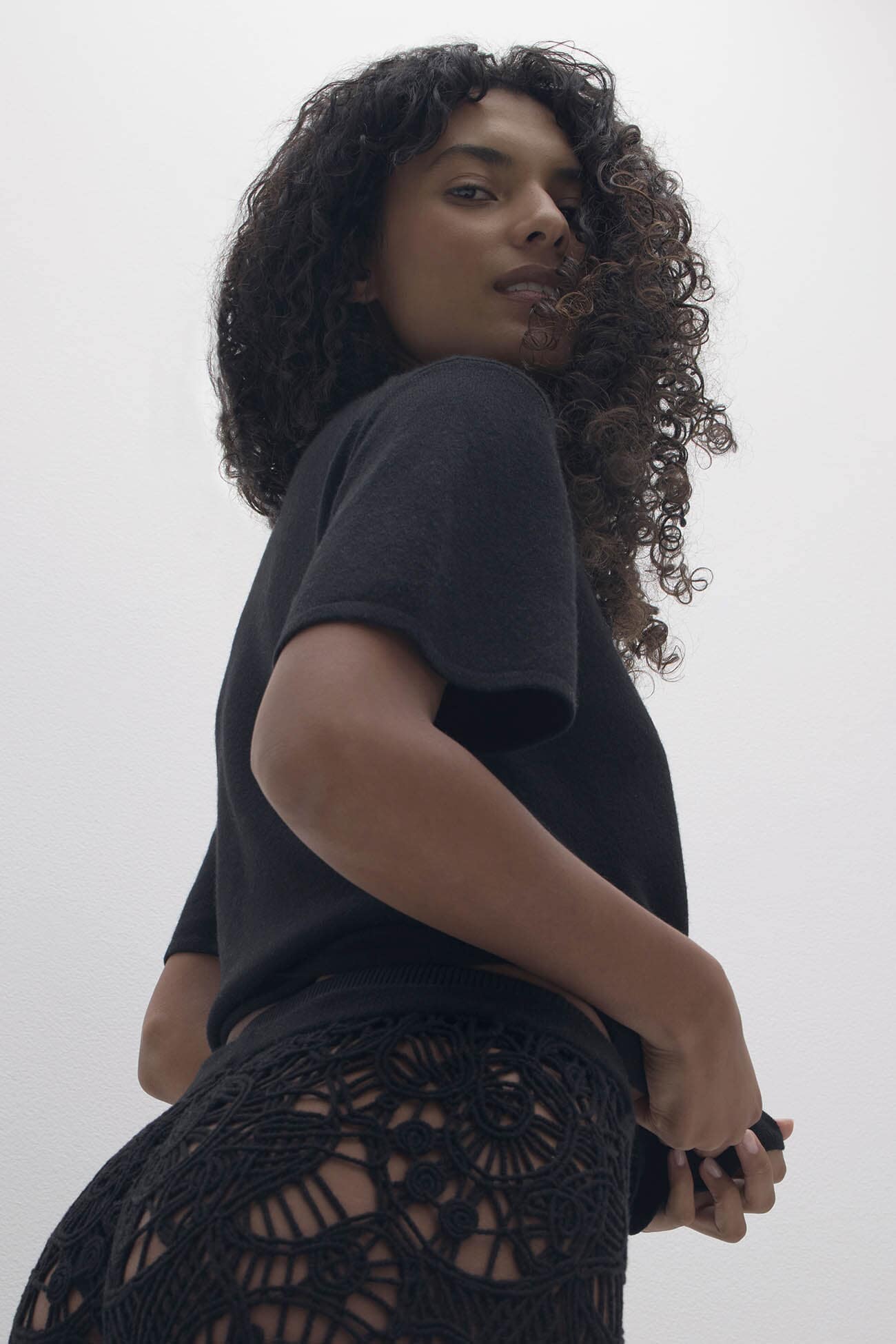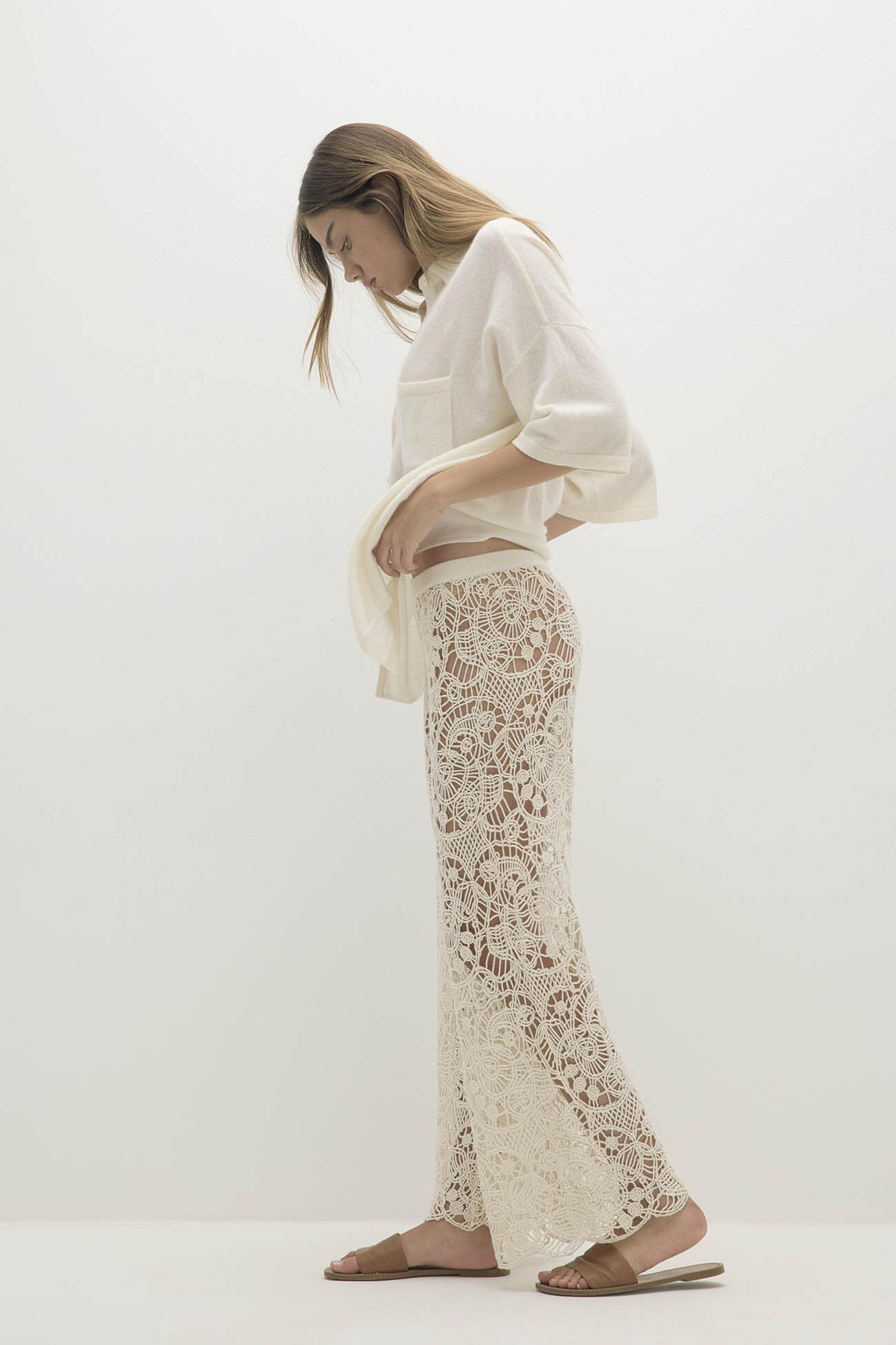 Wide-leg, cropped crochet lace knit pants with an elastic waist for comfort. A nature-inspired design with ribbed trims for a refined touch. Finish the set with the Monica Crewneck.