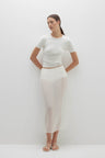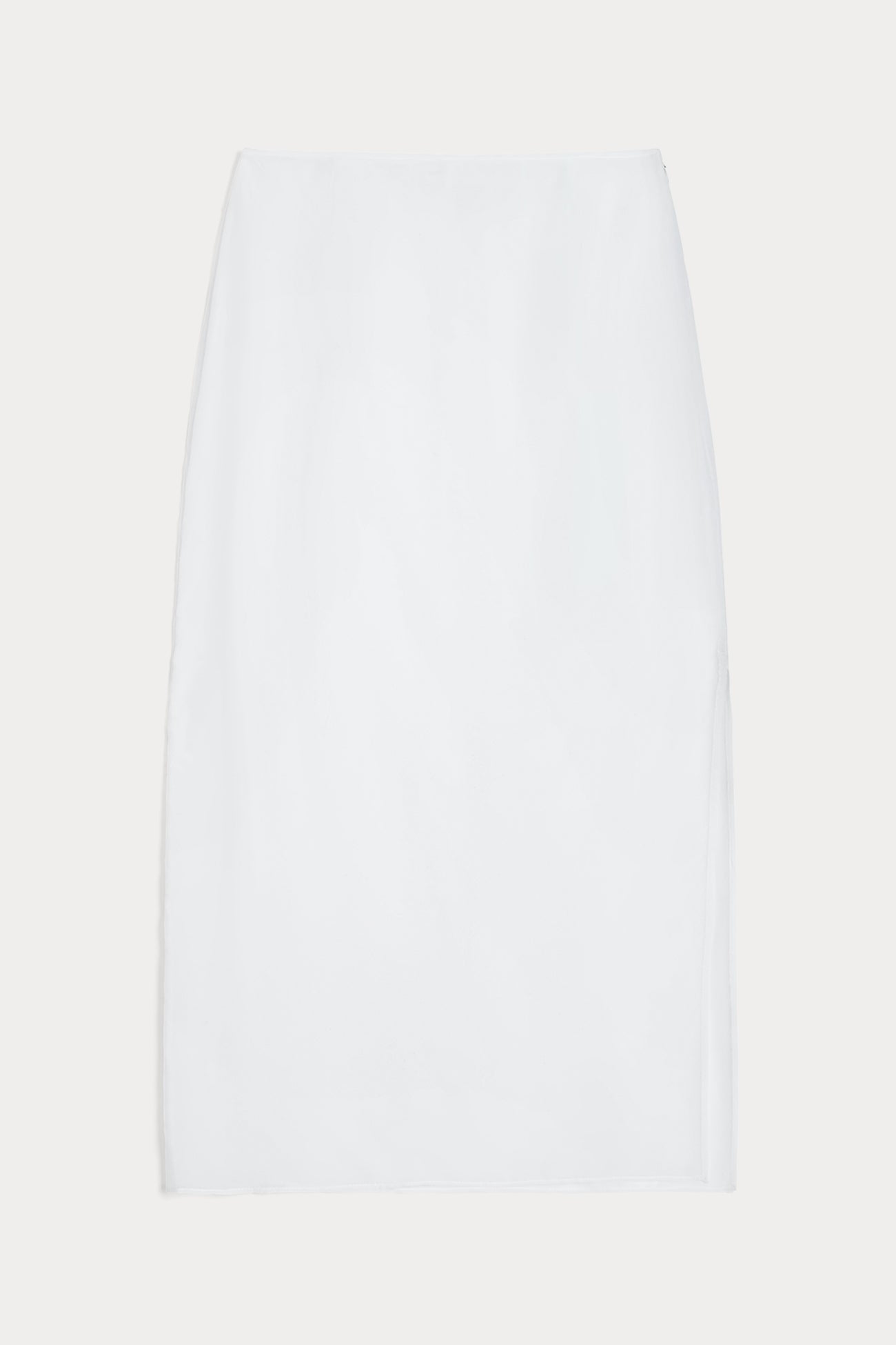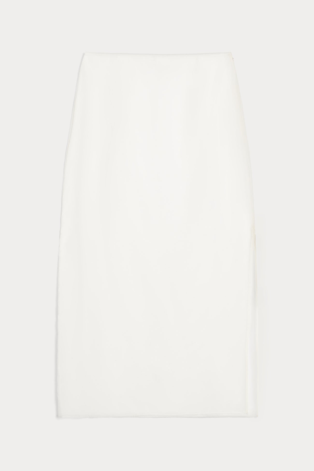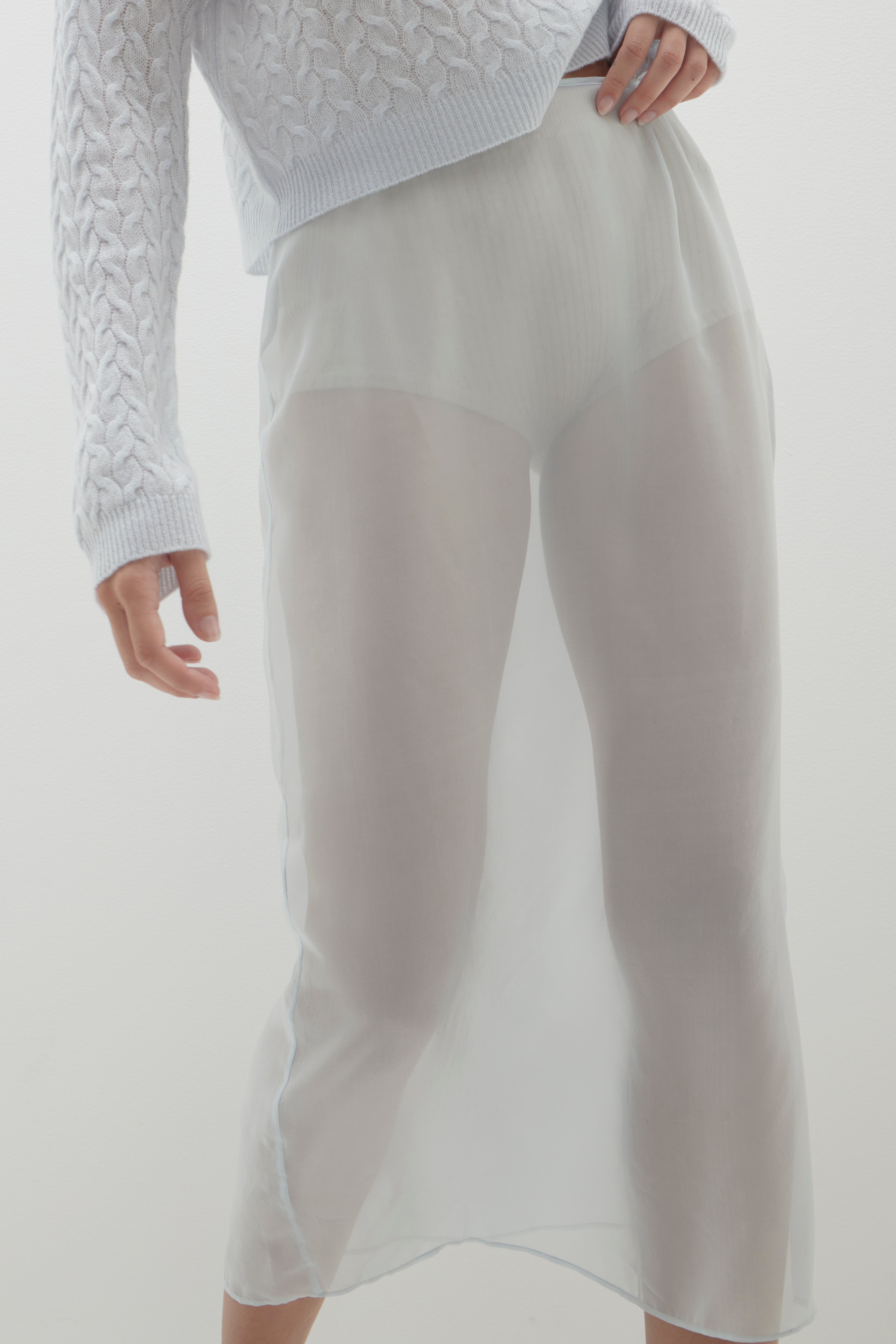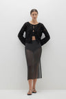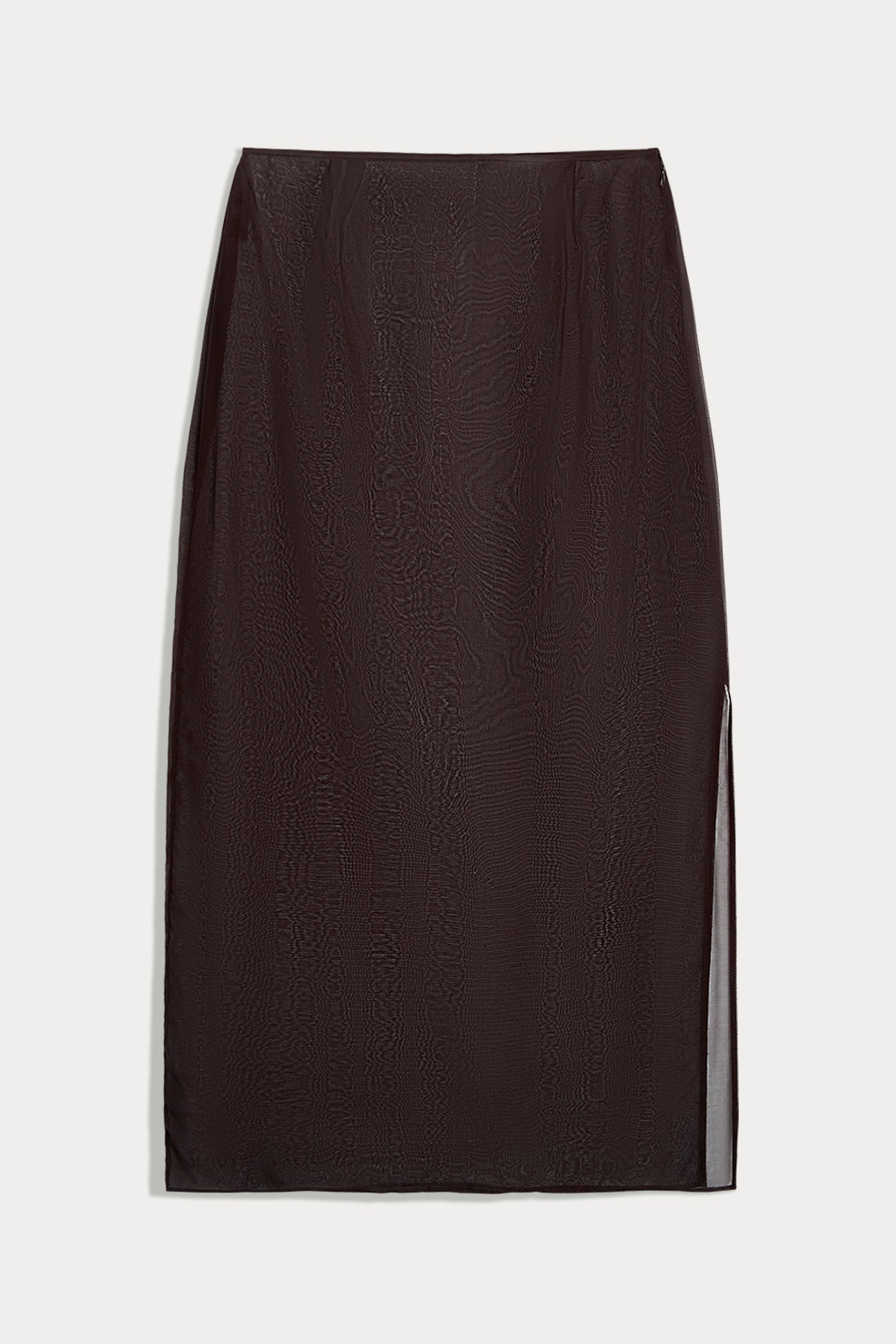 A breathtaking must-have for the season. This silk organza midi skirt skims the body while offering a flirty sheer look. Layer with the Clarissa shorts underneath and the Tulah blouse on top for an elevated ensemble.