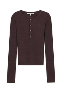 This super soft cashmere henley features a front-button placket detail, ribbed accents in a fitted silhouette.