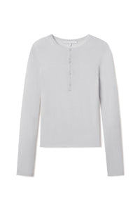 This super soft cashmere henley features a front-button placket detail, ribbed accents in a fitted silhouette.