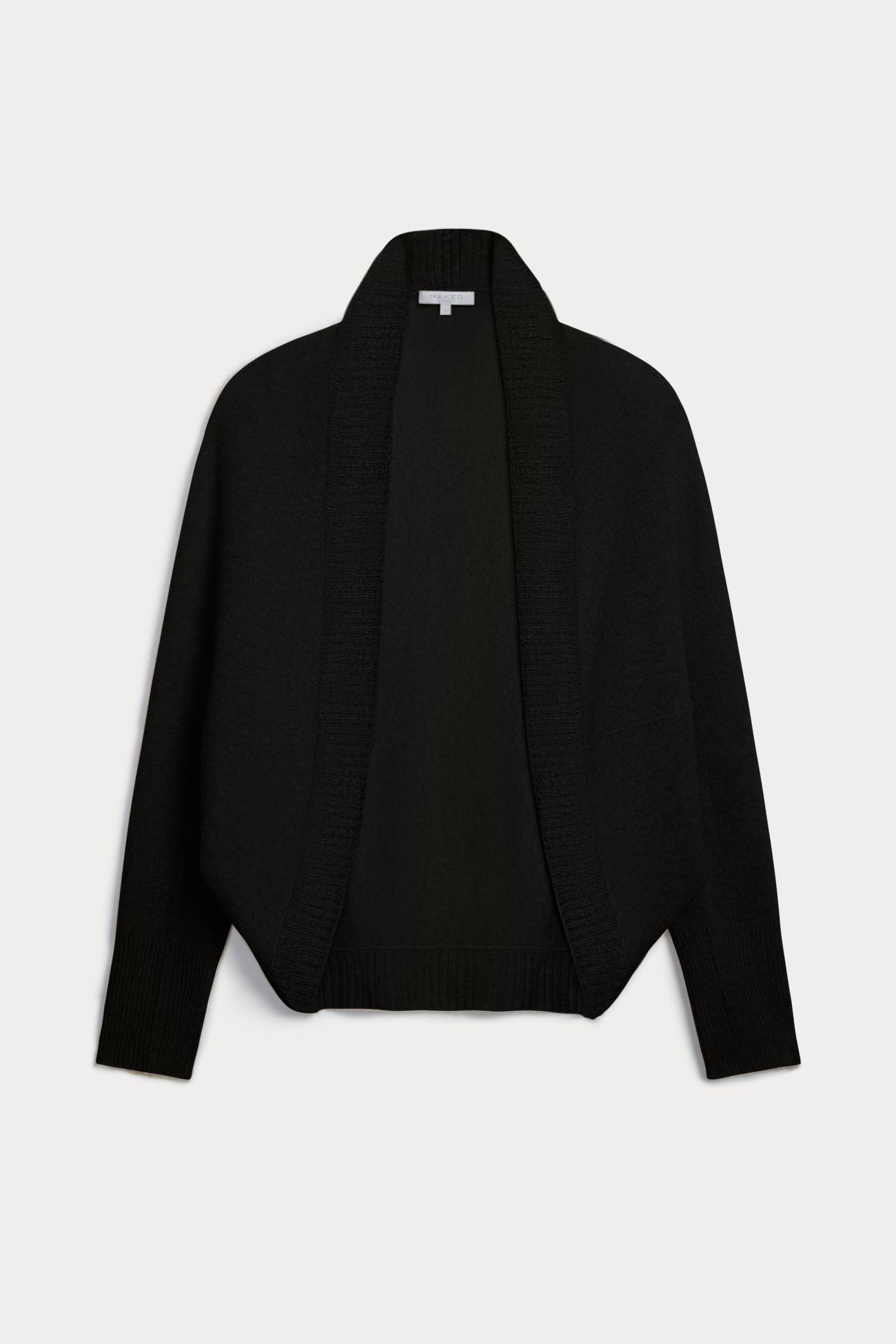 A modern, cropped shrug with delicate ribbed trim and hand-finished details. Melina is an updated version of our fan favorite - Meli Shrug.