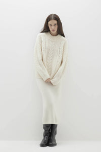The Odette sweater combines classic cable-knit styling with luxurious cashmere for a cozy yet sophisticated look. Its ribbed trim enhances the timeless a-line silhouette, making it a versatile addition to any winter wardrobe.