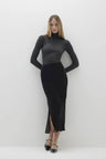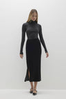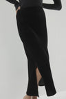 The Ophelia midi skirt in luxurious velvet is the perfect statement piece for any sophisticated wardrobe. With a side slit and refined silhouette, it pairs beautifully with both casual and formal tops.