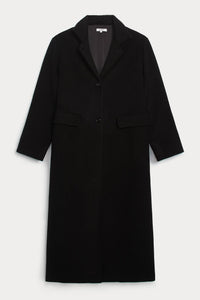 The Ottilie longline coat is a timeless outerwear piece, made from a luxurious wool blend. With a button-front closure, slit pockets, and a charming detail at the back, this coat combines sophistication and practicality.