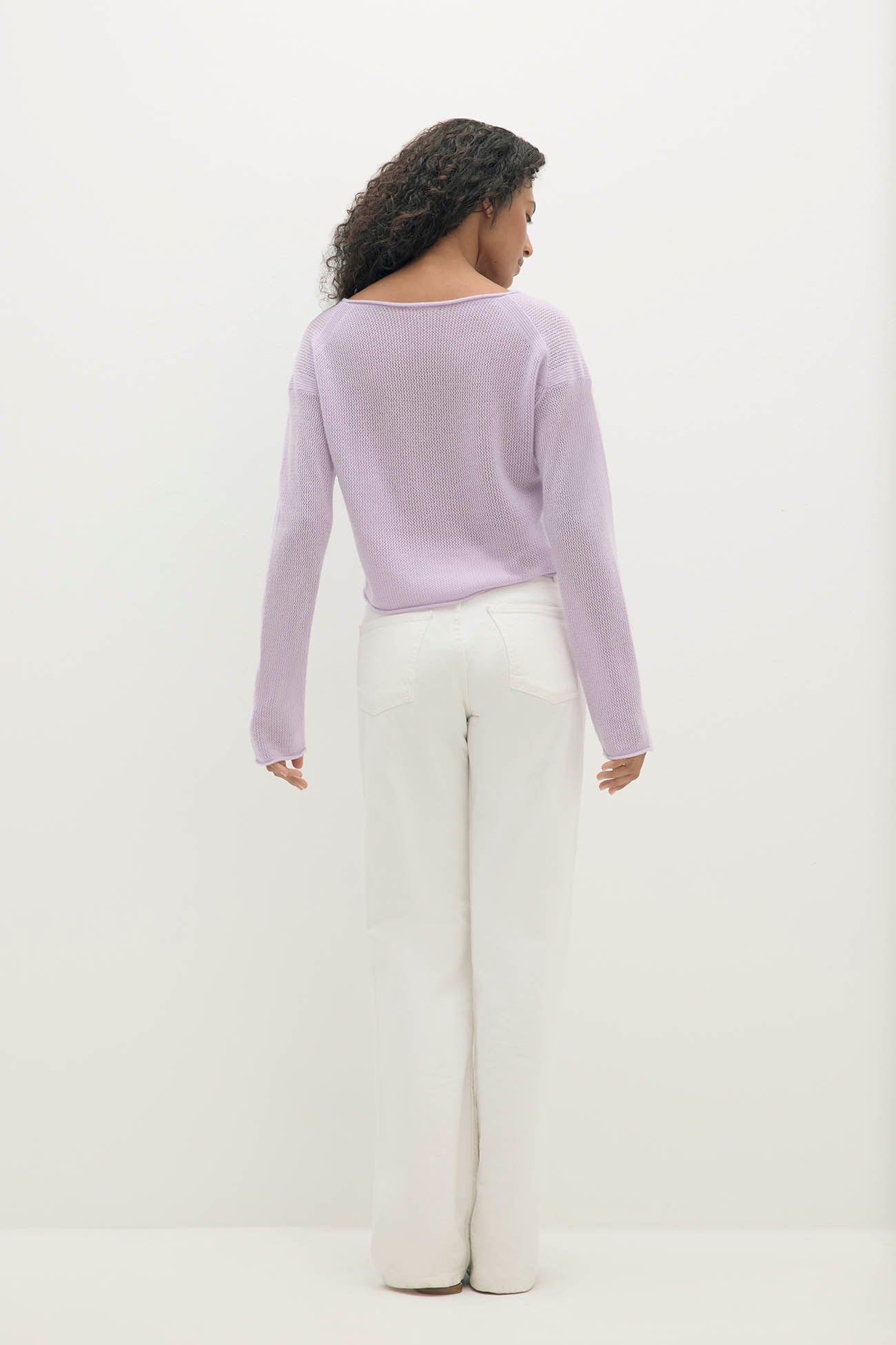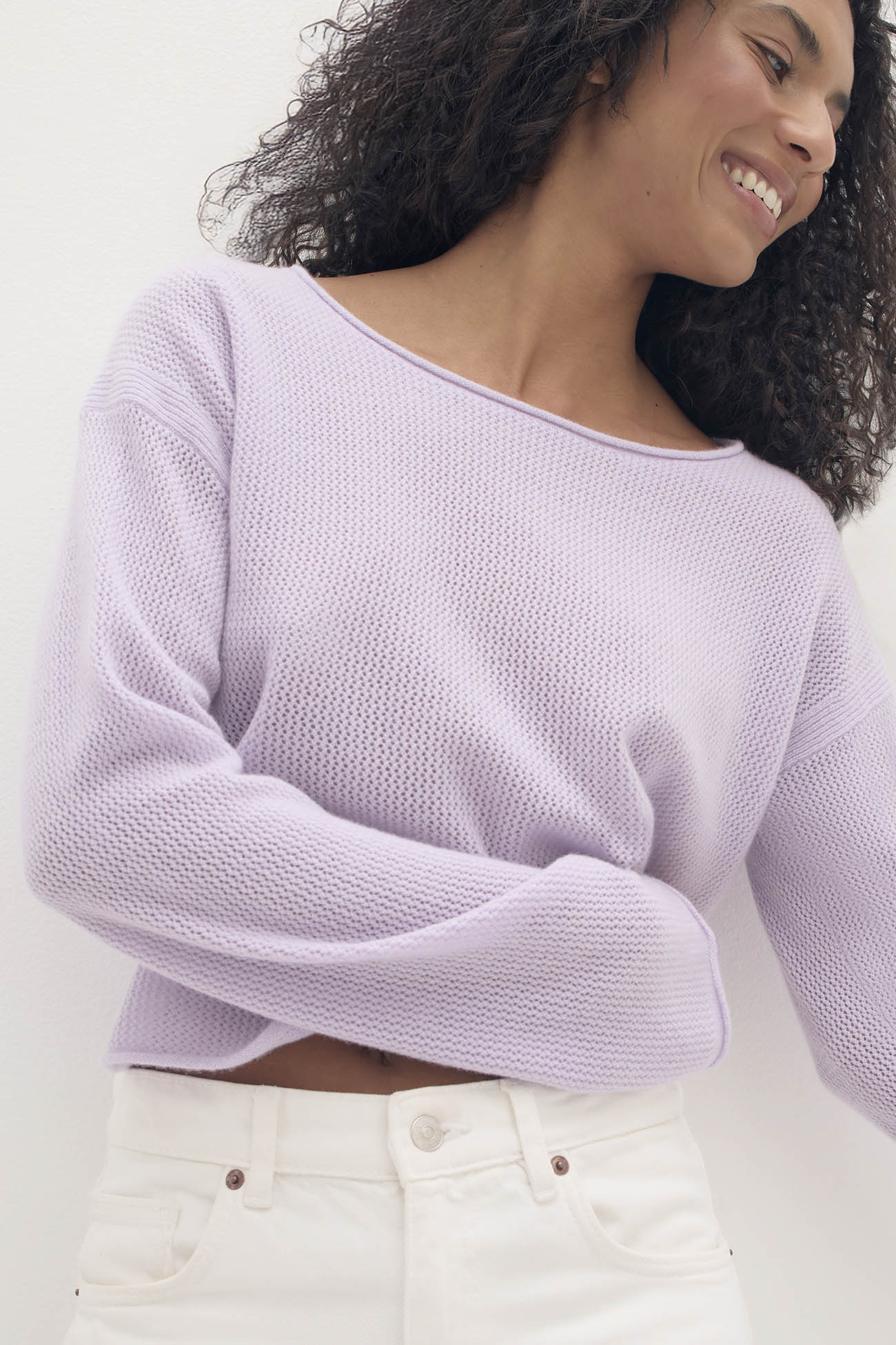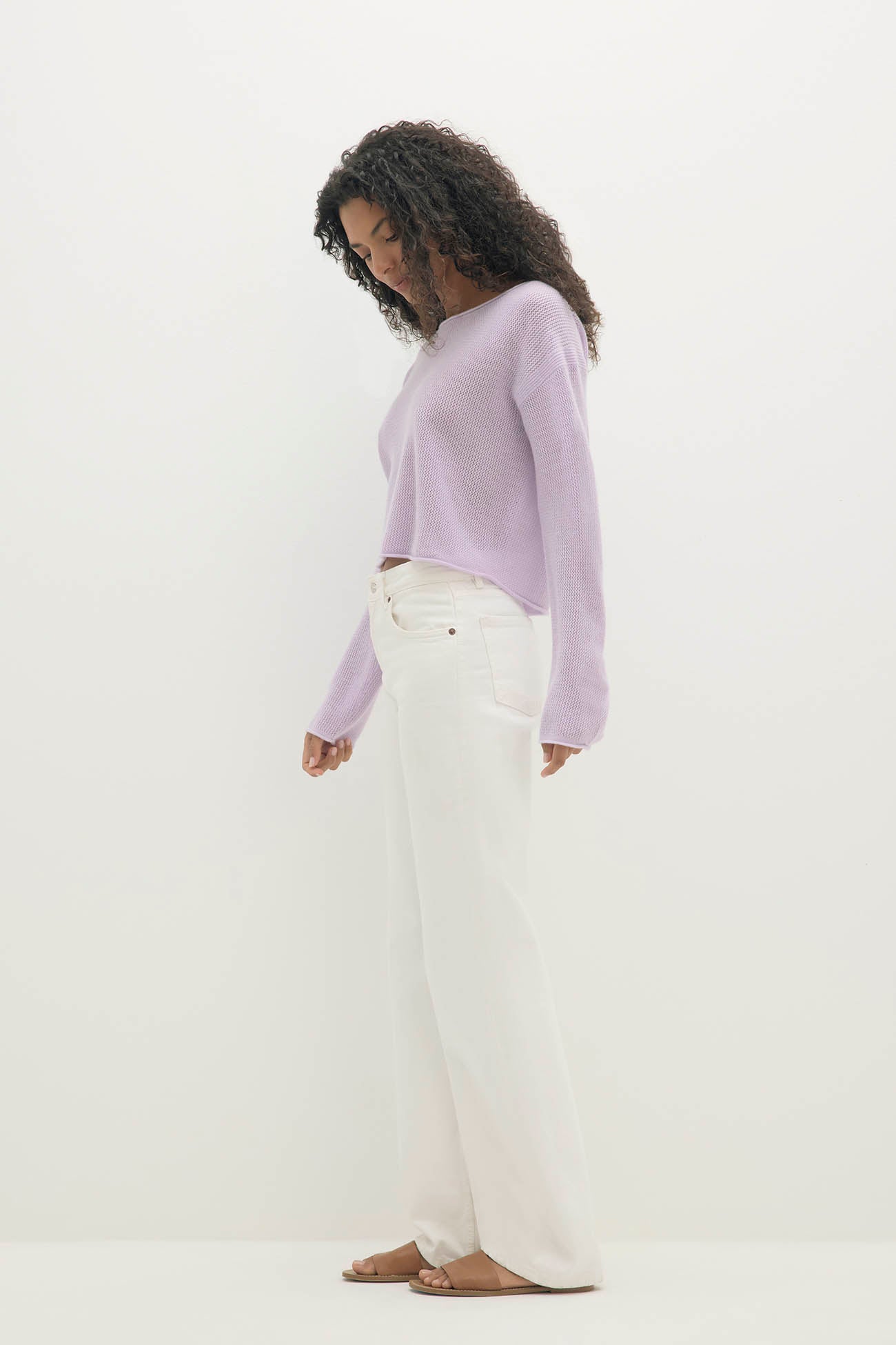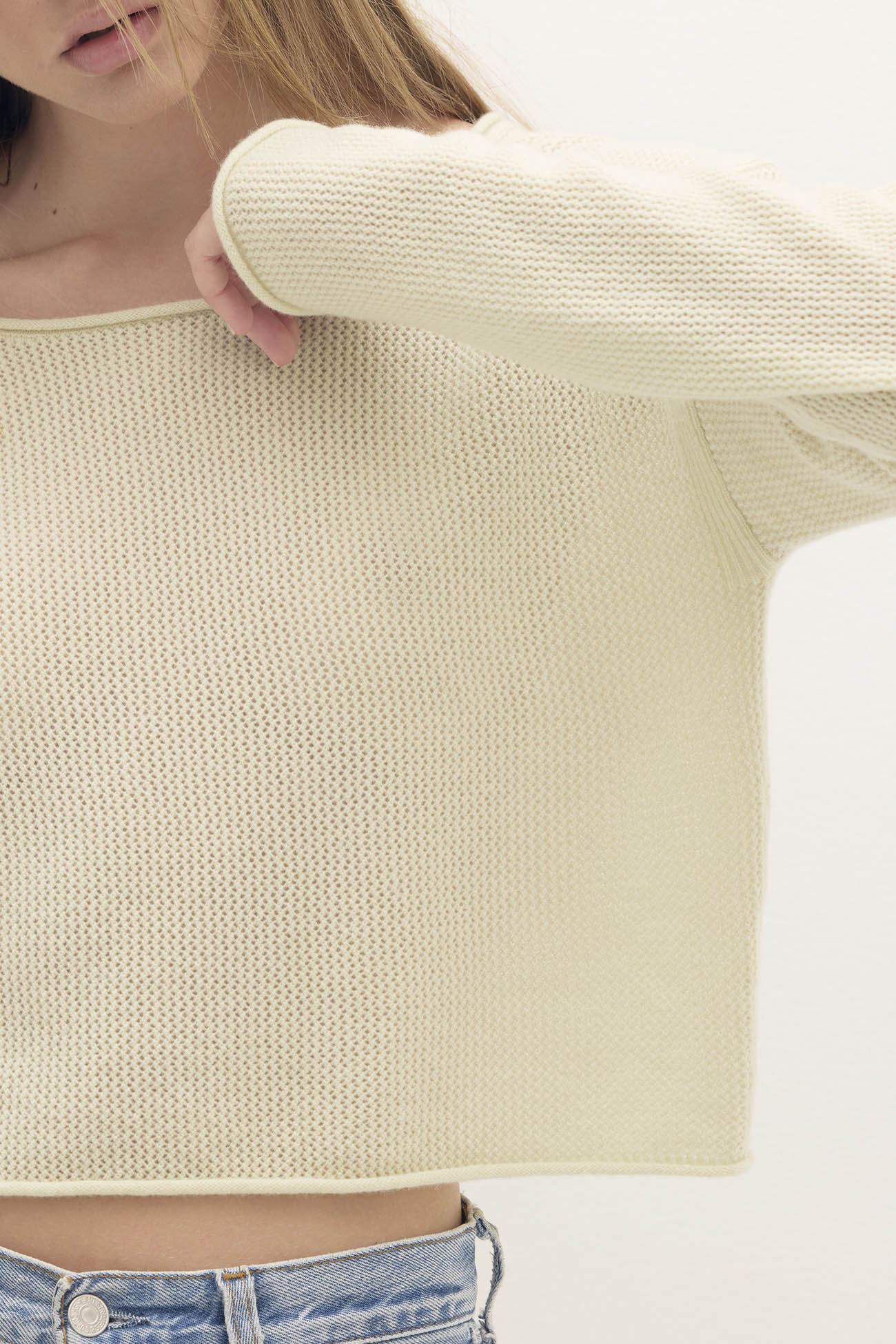 Playful and polished, the Poppie Cropped Sweater features a sheer-mesh knit, relaxed fit, and rolled hems. With a drop-shoulder design, this cropped crewneck pullover is a must-have for breezy layering.