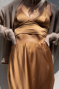Elegant and versatile, the Sasha silk bralette features a plunge neckline and longline silhouette. Designed to be worn alone or under your favorite cashmere pieces.