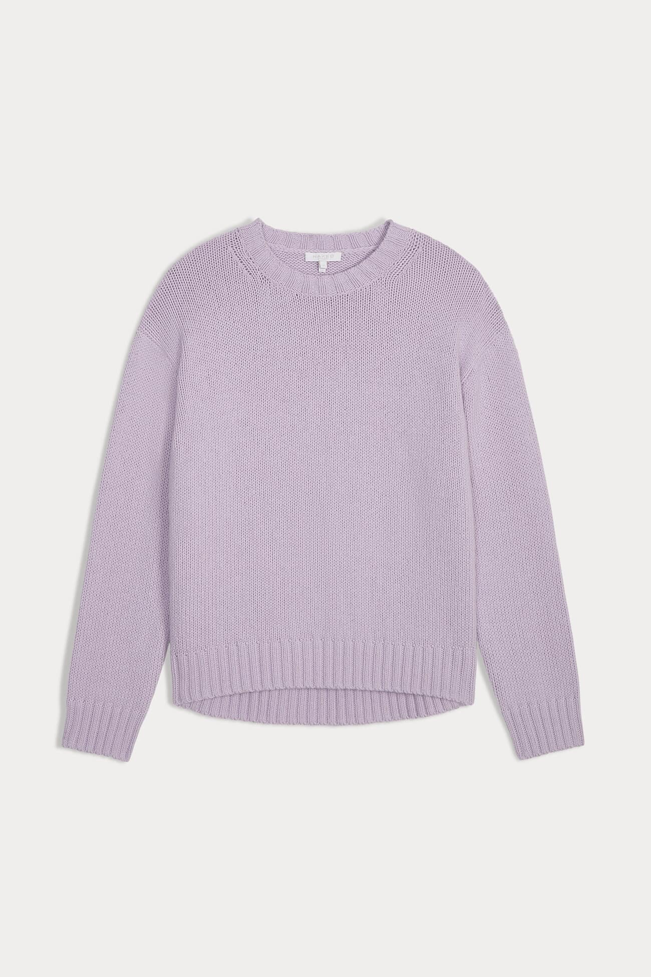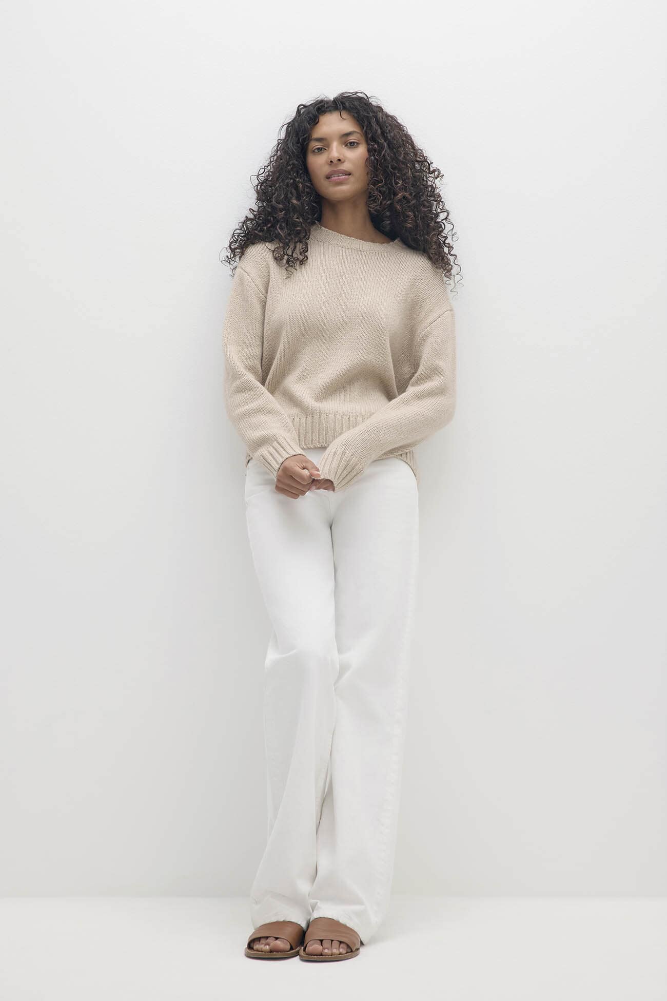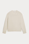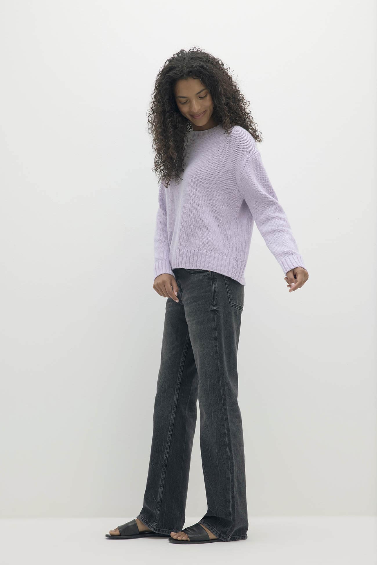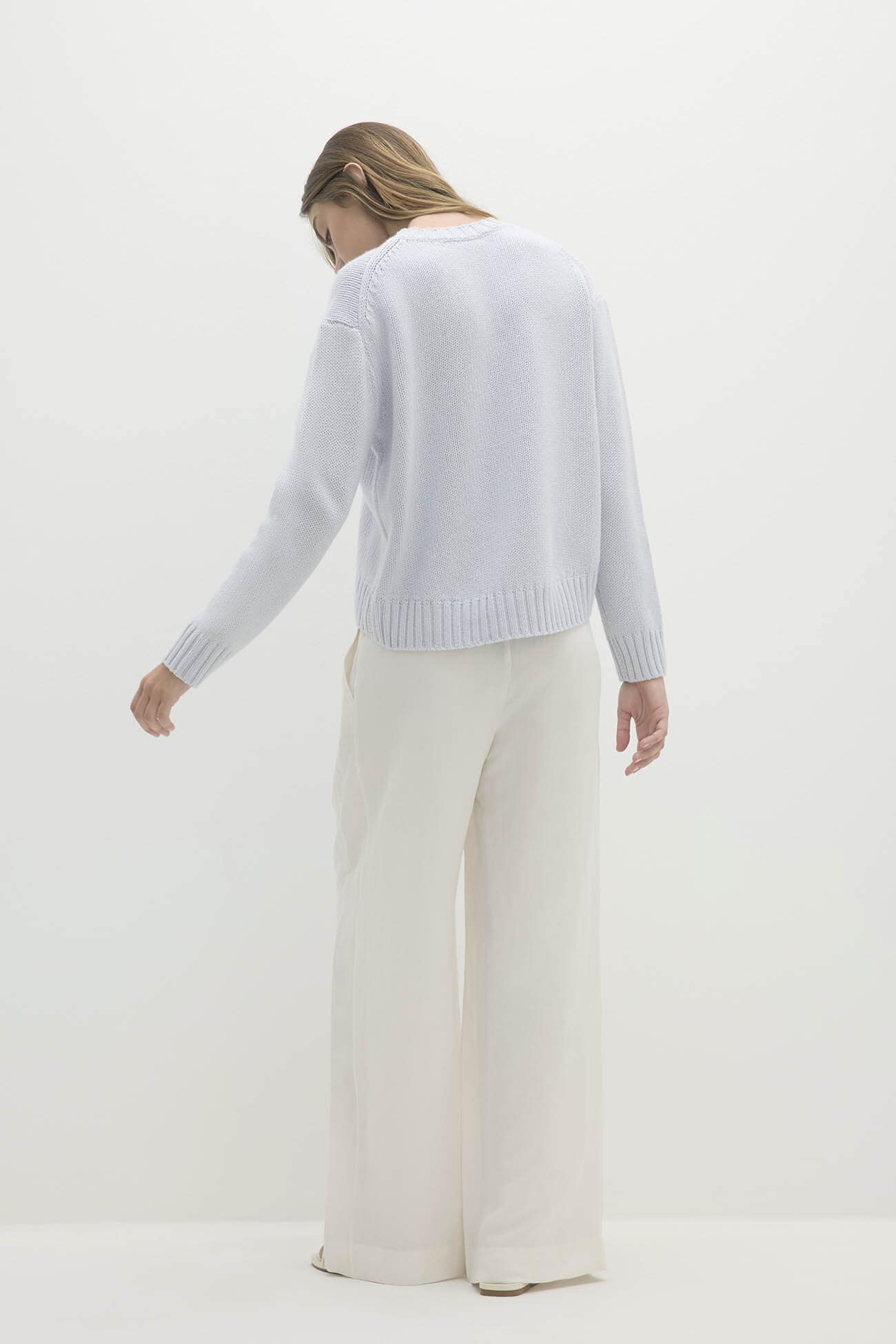 The Shelley is a chunky yet lightweight organic cotton-cashmere blend crewneck. Features ribbed trims and a relaxed fit for effortless layering.