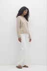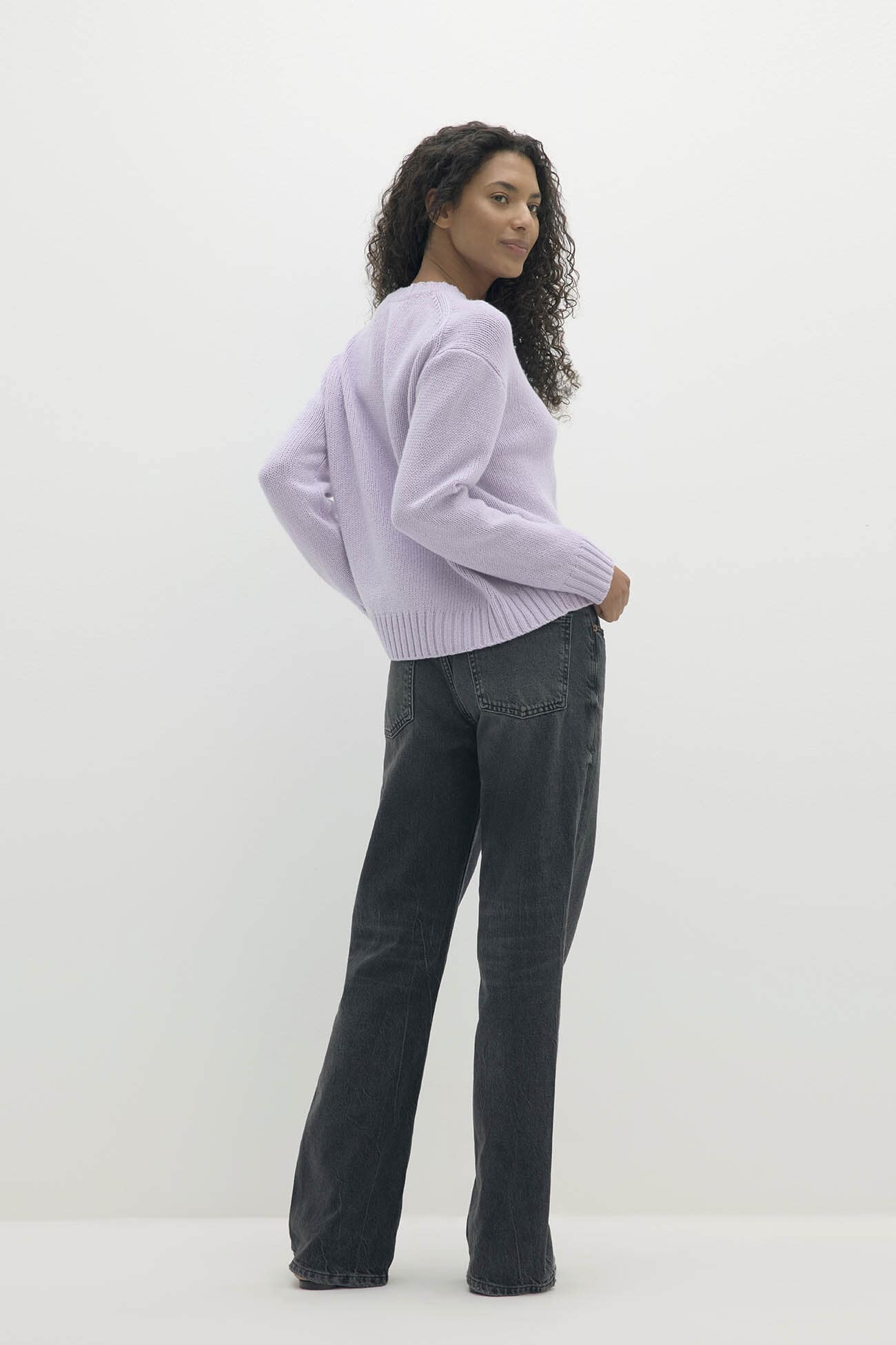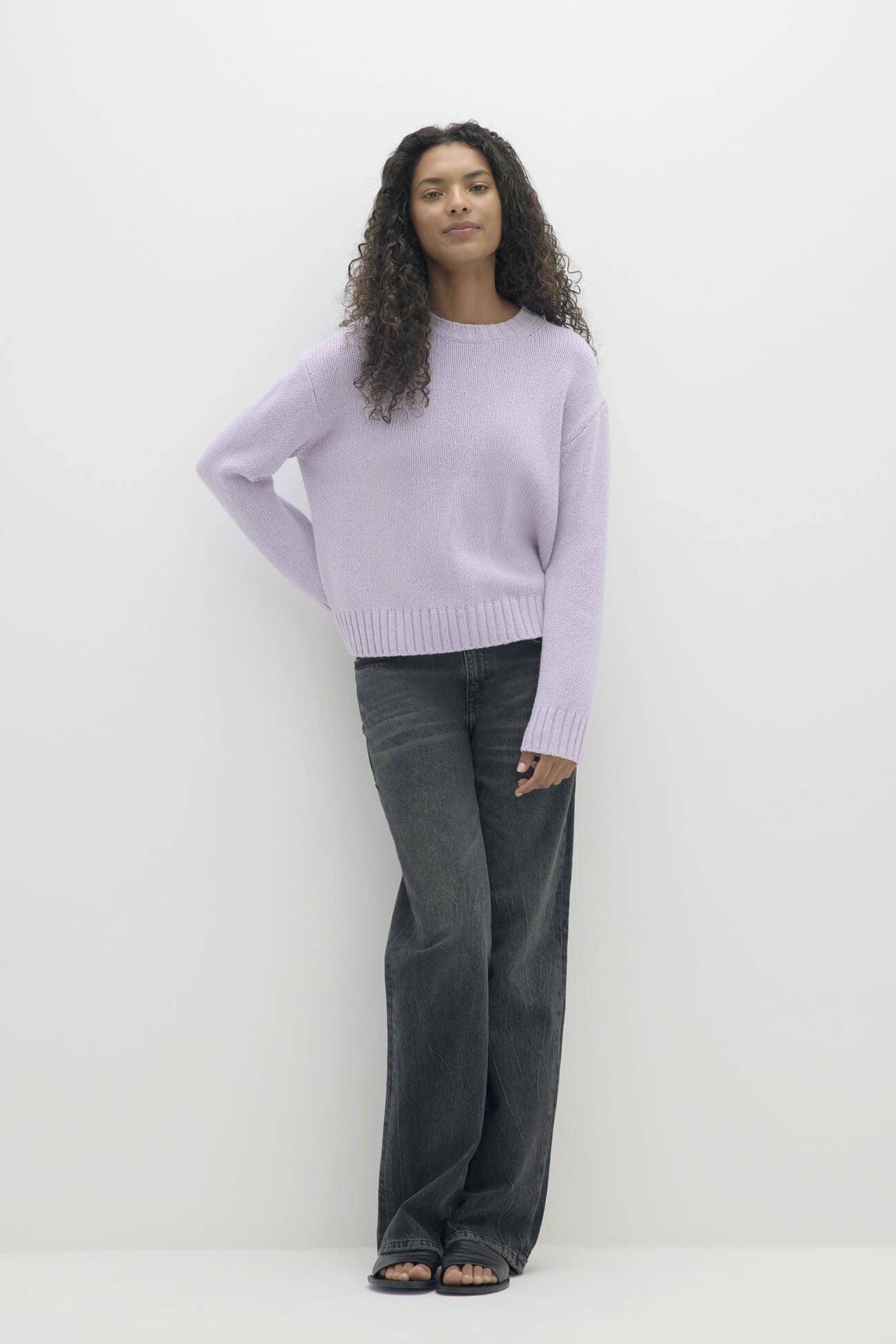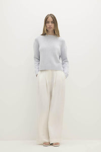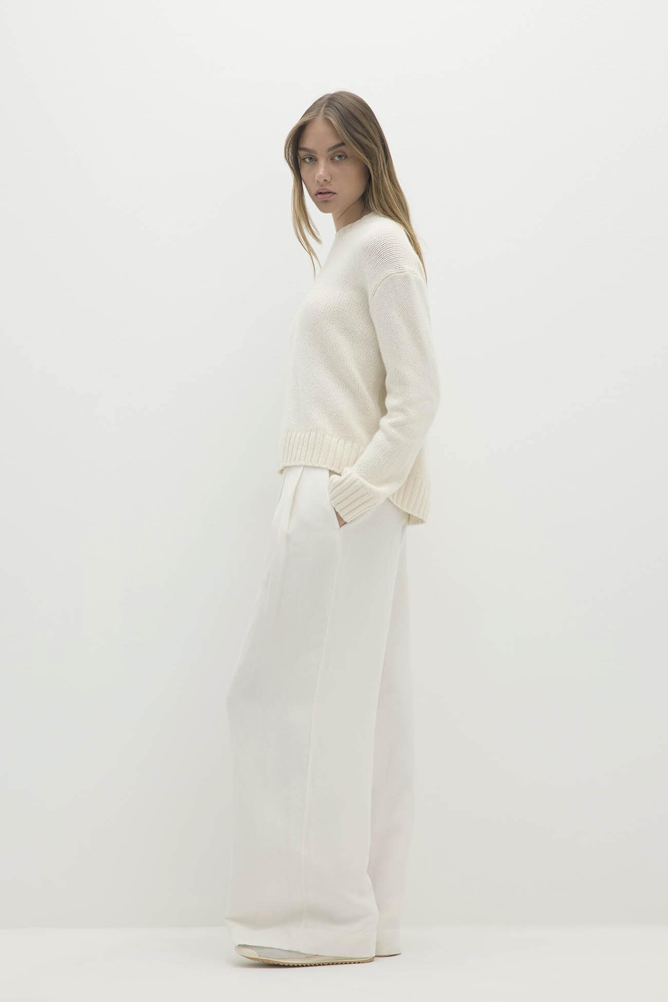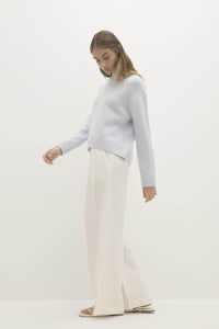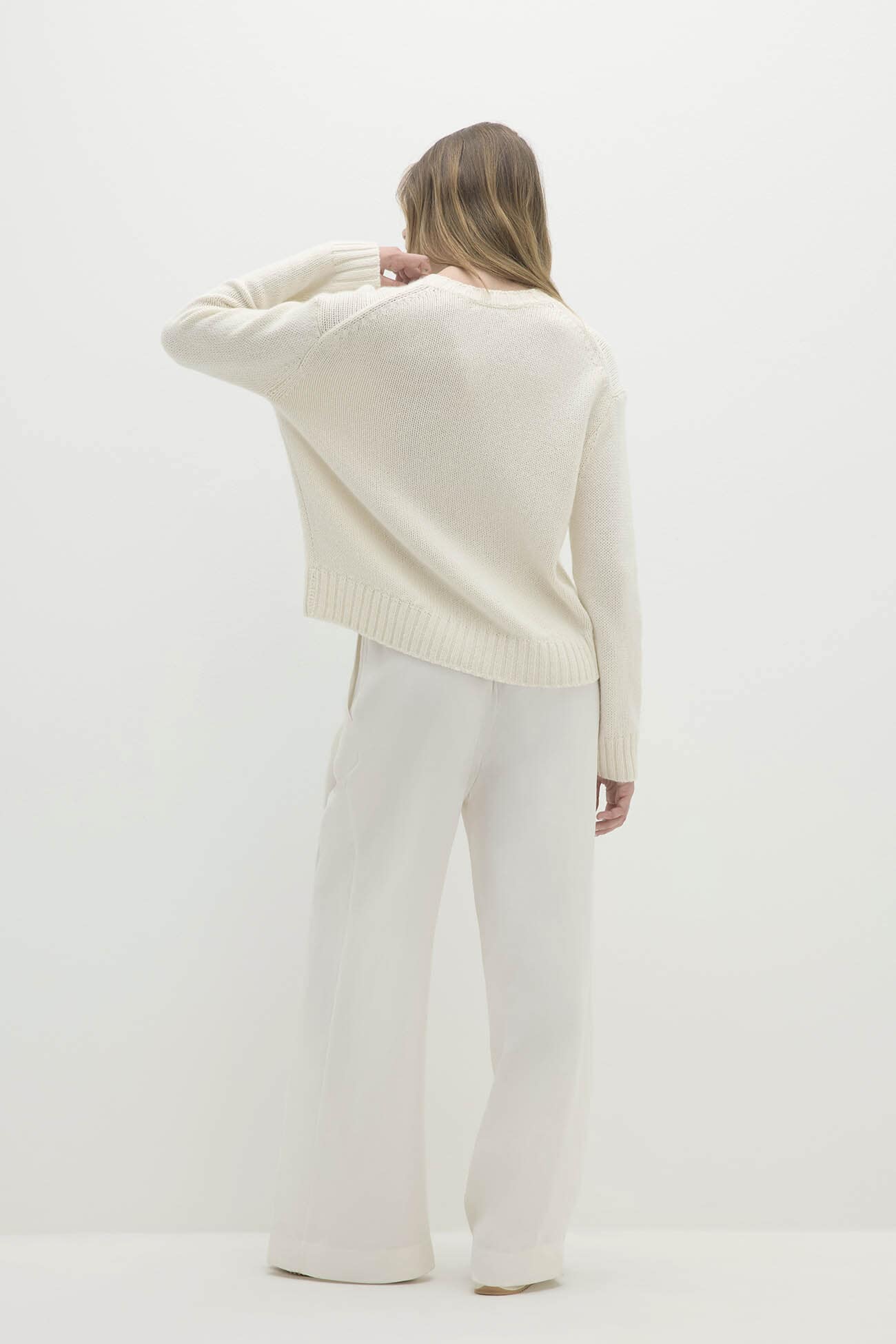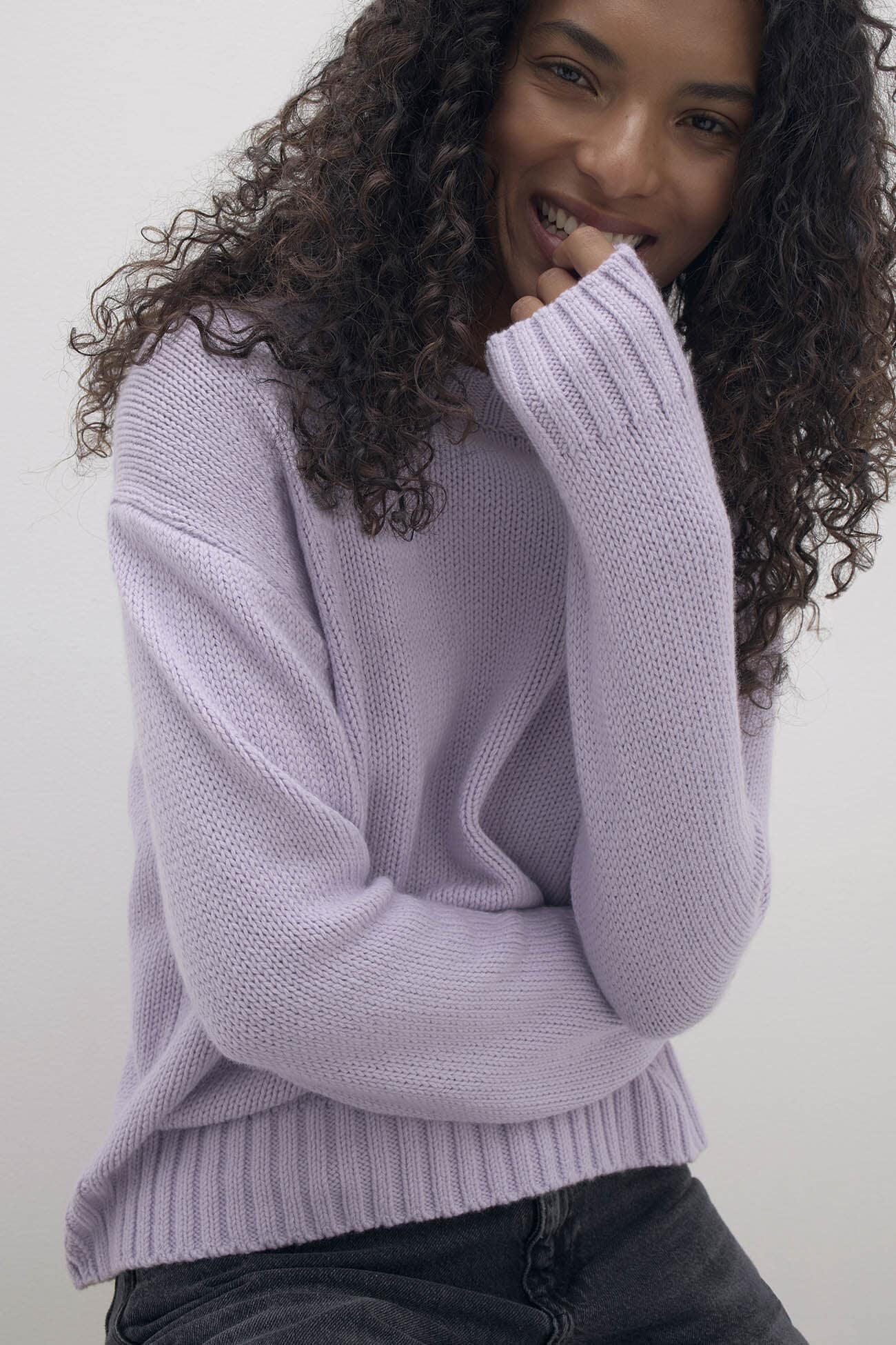 The Shelley is a chunky yet lightweight organic cotton-cashmere blend crewneck. Features ribbed trims and a relaxed fit for effortless layering.