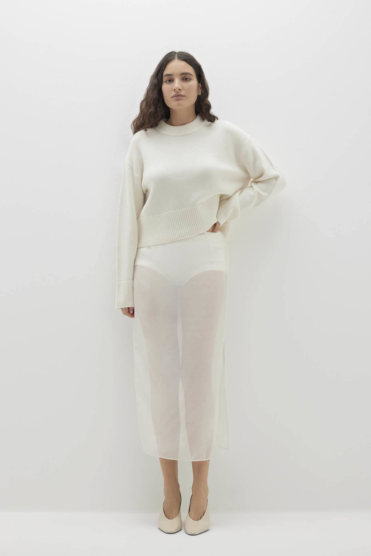 The Sloane crewneck sweater exudes effortless style with its modestly cropped fit and donut neck design. Made from the finest cashmere, it‚ a cozy staple that can be dressed up or down for any occasion.