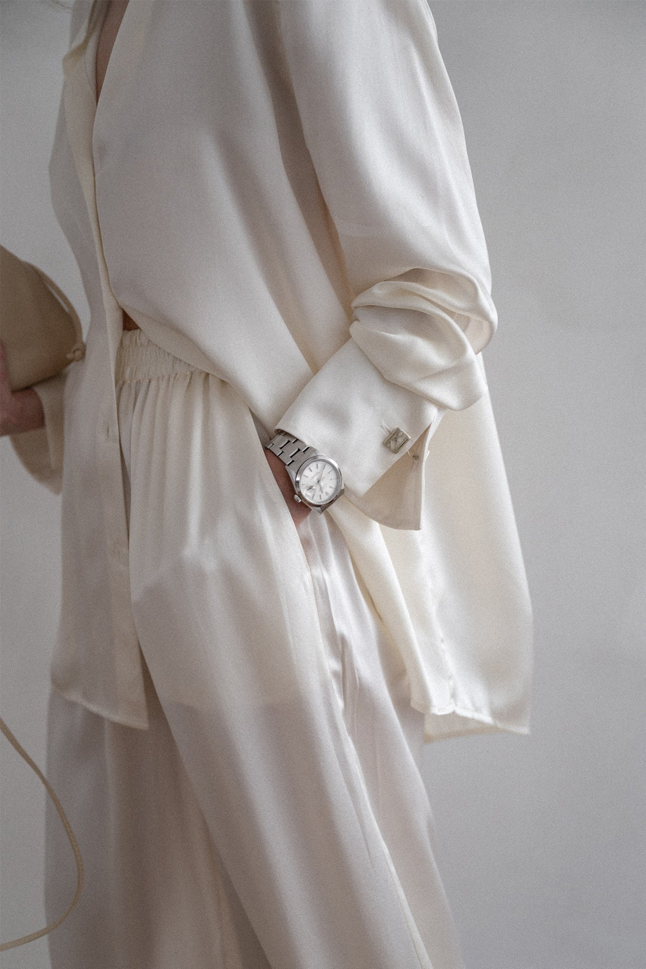 A refined essential, consisting of luxurious silk, a classic collar, and patch pockets. Featuring our limited edition, custom made, signature Naked logo cufflinks in 10k gold tone. Perfect for elevating any outfit with effortless elegance.