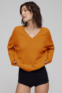 Throw on the Sydney v-neck sweater with ribbed trim details that pair perfectly with any outfit for an effortlessly chic look.