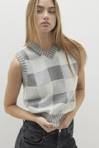 The Talulah Sweater Vest offers a stylish layering option with its classic plaid pattern and v-neck design. Finished with ribbed trim, this vest adds a preppy touch to any look.